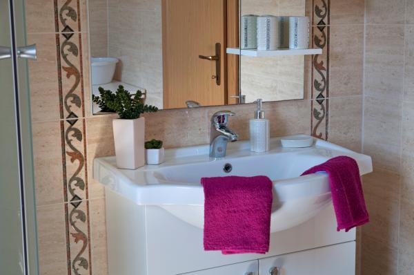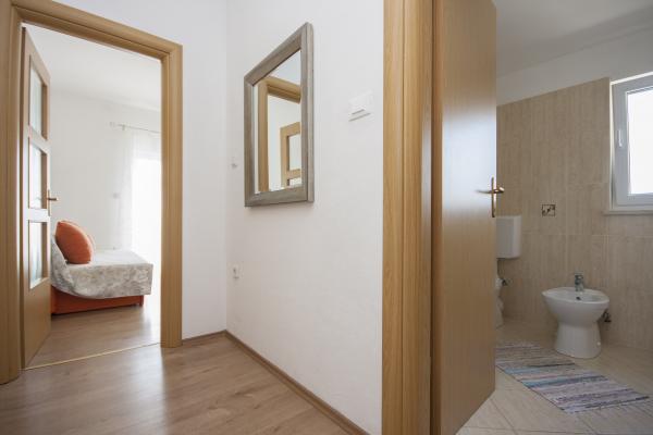 Zelo mirno, očarljivo mesto, izjemno prijazni in ustrežljivi starejši lastniki, osvežitev ob prihodu, lahko kupite tudi olivno olje in druge dobrote od lastnika, plaža približno 5 minut hoje. Priporočam, še pridem sem.