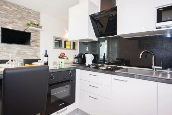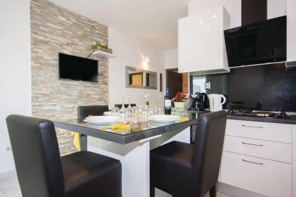 V naši počitniški hiši so 4 moderna apartmaja. Vsak apartma ima dve spalnici in sodobno opremljeno kuhinjo ter kopalnico, da bo vaše bivanje čim bolj prijetno. Dva apartmaja v pritličju imata teraso, ki jo lahko uživate v zalivu in bližnji Rogoznici. Preostala dva apartmaja v naši hiši sta v prvem nadstropju, v dveh nadstropjih in imata balkon, s katerega je tudi lep razgled. Naš objekt se nahaja v mirni vasici Zatoglav, ki je od Rogoznice oddaljen le 5 minut vožnje z avtom ali čolnom in 30 metrov od plaže.