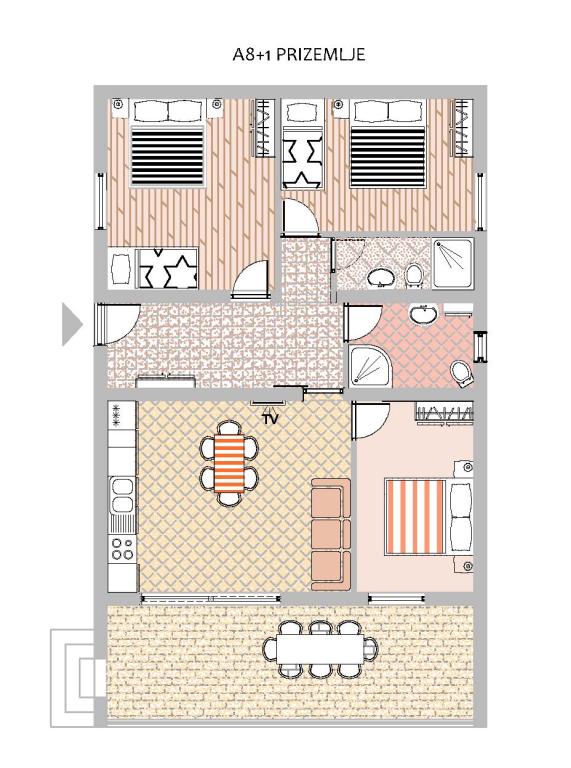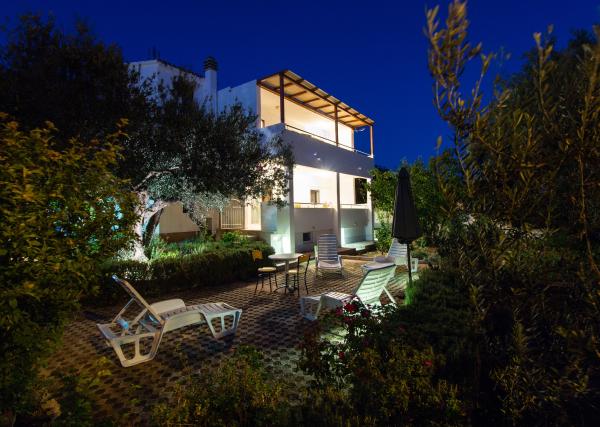 Opremljeni apartmaji s 3 zvezdicami. Apartma A-8 1, pritličje, primerno za invalidske vozičke, velika terasa, 3 klimatske naprave, 2 stranišča, plaža, oddaljena 40 m, primerno za otroke, velik vrt, žar, zunanji tuš, parkirišče zaščiteno pred soncem. Čudovita promenada ob morju, od apartmaja do centra (približno 2000 m). Hišni ljubljenčki po dogovoru. Za naše turiste organiziramo transfer letališče Split - Rogoznica. Urejene kolesarske steze, približno 100 km. Mir, tišina, blaga klima, sonce, sprehod ob morju, počitek za dušo in telo. Dragi prijatelji, mi smo najbližje toplemu morju, dobrodošli pri nas! Apartma A9, 1. nadstropje, velik balkon, čudovit pogled na morje, 2 manjša balkona, 3 klimatske naprave, 3 stranišča, žar, parkirišče. Dobrodošli pri nas!