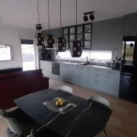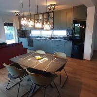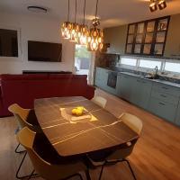 Nova enonadstropna hiša z bivalno površino 70 kvadratnih metrov s pokrito teraso velikosti 30 kvadratnih metrov se nahaja na mirni lokaciji, stran od ceste, s pogledom na oljčni nasad. Prostorna terasa je zaščitena pred pogledi sosednjih hiš in zagotavlja zasebnost. Plaža je v hoje oddaljena le nekaj minut od nepremičnine. Zasebno parkirišče je zagotovljeno za tri avtomobile. Ima dve klimatizirani spalnici (1. velika zakonska postelja, 2. dve enojni postelji), prostorno klimatizirano dnevno sobo s kuhinjo in jedilnico, veliko kopalnico z WC-jem. Hiša je opremljena z vsem novim pohištvom in aparati, pametnim televizorjem, teraso z veliko mizo za 6 oseb.