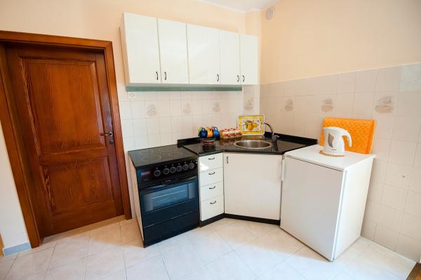Apartma se nahaja v zelo mirnem okolju, obdan z zelenjem in le deset minut hoje do morja. Ima eno spalnico, kopalnico, dnevno sobo z majhno kuhinjo. Nahaja se v pritličju, ima teraso s pogledom na manjši cvetlični vrt. Idealen je za pare ali družine z enim ali dvema otrokoma. Čez cesto je majhen park, kjer se lahko igrajo otroci.