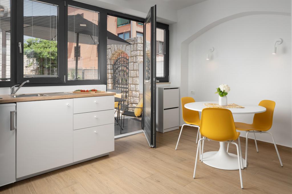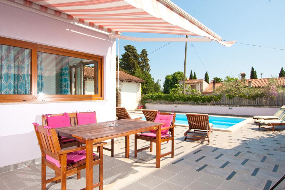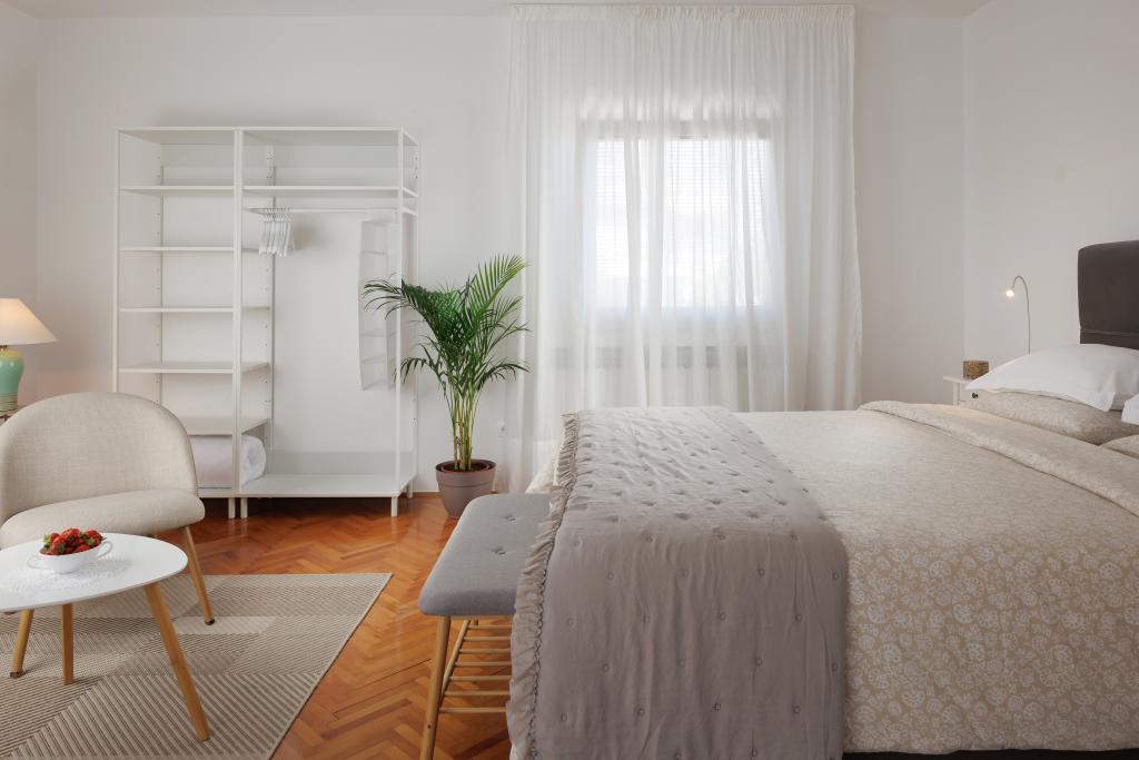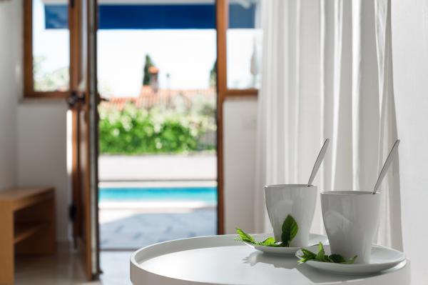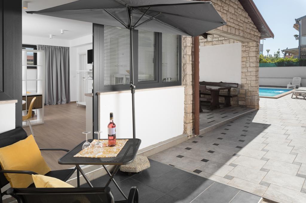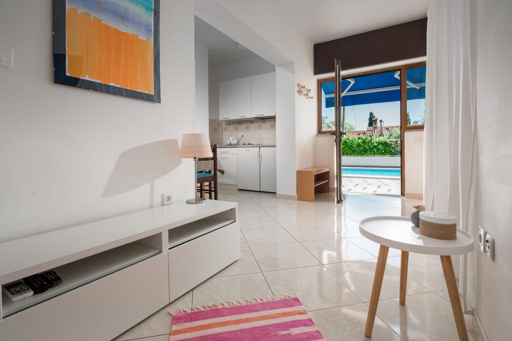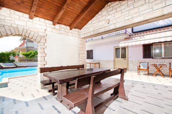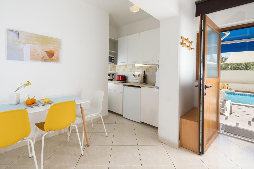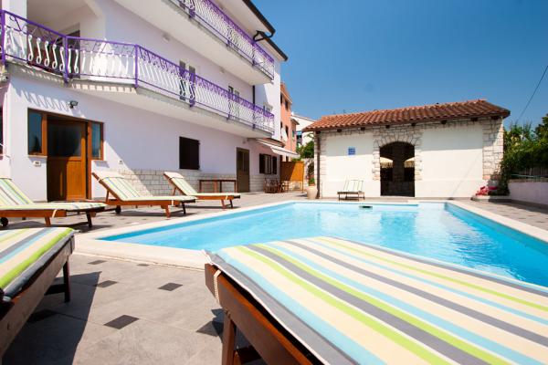 Nepremičnina se nahaja v mirnem delu mesta, v bližini so restavracije, lekarna in trgovina z živili (10-100 m). Center mesta je oddaljen cca 10 min hoje, do najbližje plaže pa cca 1000 m ali 15 min hoje. Na dvorišču hiše se nahaja bazen in prostor za sončenje, ki je gostom na voljo za prijetno bivanje in sprostitev, obdan z zelenjem in zaščiten pred drugimi hišami.