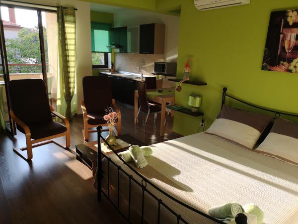 Ta nastanitev je odlična ponudba, ki jo boste našli v Rovinju. Cene so odlične, kar je v Rovinju redko. V zameno dobite vse, kar potrebujete, čist, dobro opremljen apartma z zelo prijetnimi in skrbnimi gostitelji, ki so vam v veliko pomoč. Do središča s ponujenimi kolesi je približno 10 minut.