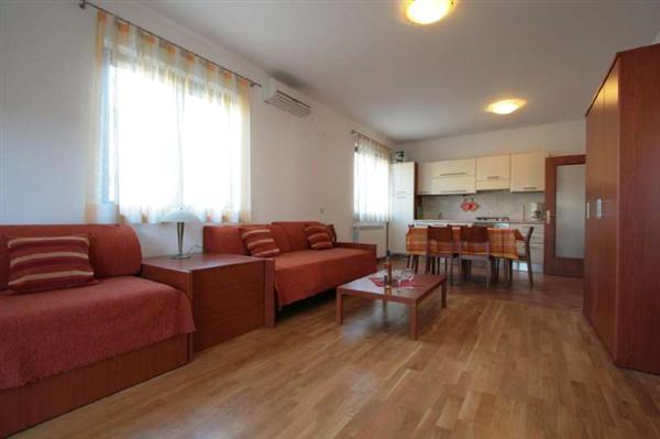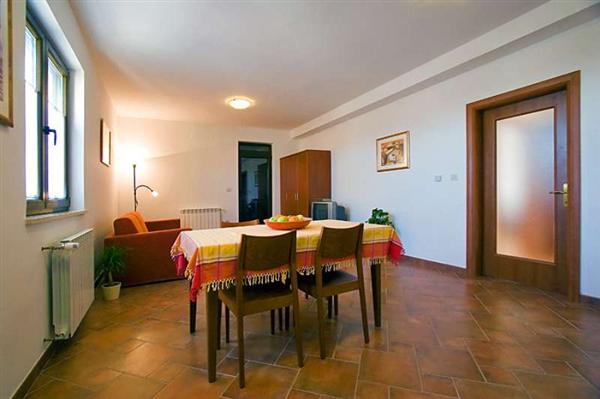 Naša na novo zgrajeni apartmaji se nahajajo v vili v bližini naravnega parka Zlatni rt (Punta Corrente), in le 10 minut hoje od plaže Kuvi, so na voljo skozi vse leto. Rovinj in njegovih 10 otokov, njihova prijetna mikroklima in veliko število sončnih dni na leto, ponuja kopanje in sončenje v prelepem naravnem okolju v družbi galebov. Morda raje dolge sprehode ob morju, v senci borovcev in kolesarskih poti ob morju. Ali pa ste ljubitelj potovalno kolo slikovito istrsko notranjost, kjer vinske ceste in kulinaričnih dobrotah tradicionalne istrske kuhinje. Celotna regija je bogata z zgodovinskimi spomeniki iz rimskih časov dalje.