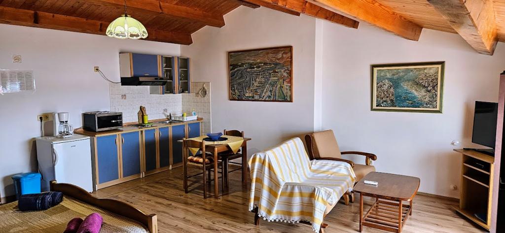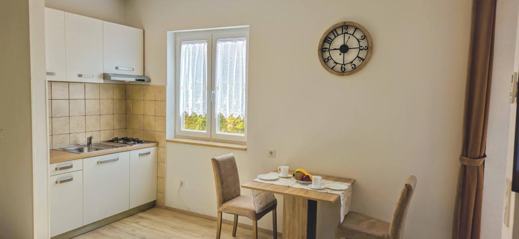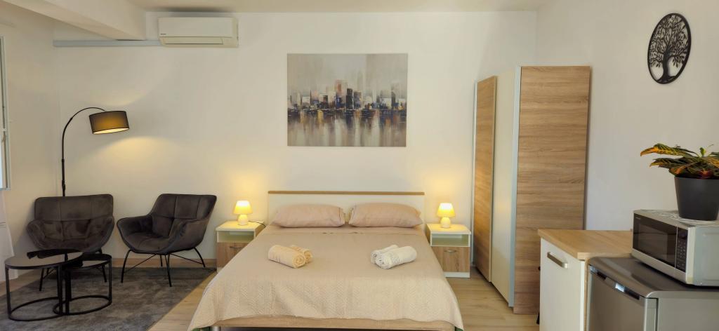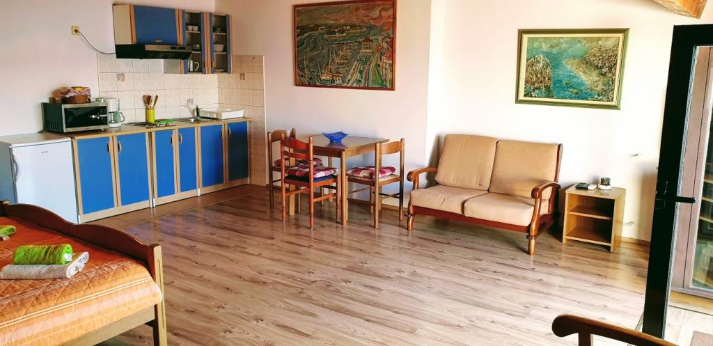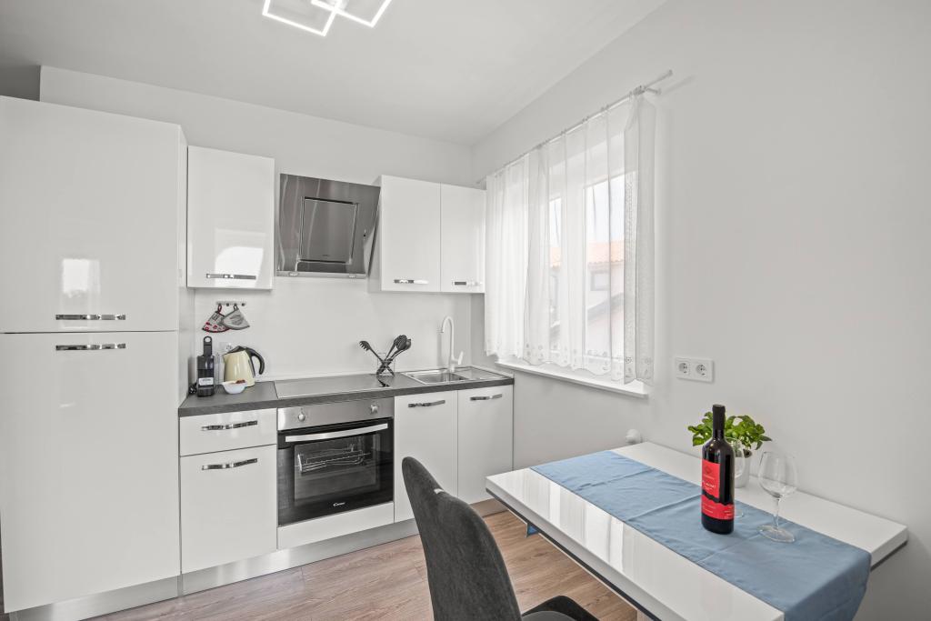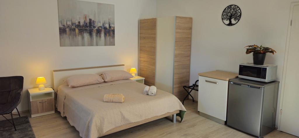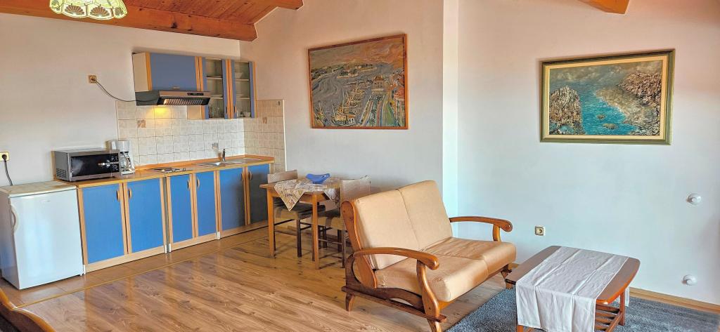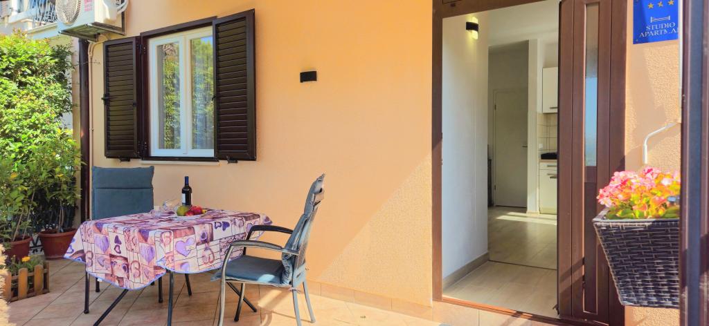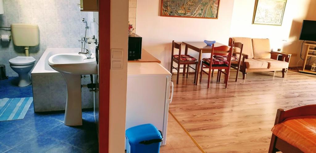 Lokacija je fantastična. Za osnovna živila je Konzum oddaljen 400 m, v bližini restavracije in gostilne, predvsem pa je plaža čez cesto! Na plaži odličen bar. Plaža je prodnata in dobra za otroke. Šefje so čudoviti, gostoljubni in razumni ljudje. Parkirišče je pred apartmajem. Od središča hoje ob morju je približno 1,5 km. Imam samo pohvalne besede!