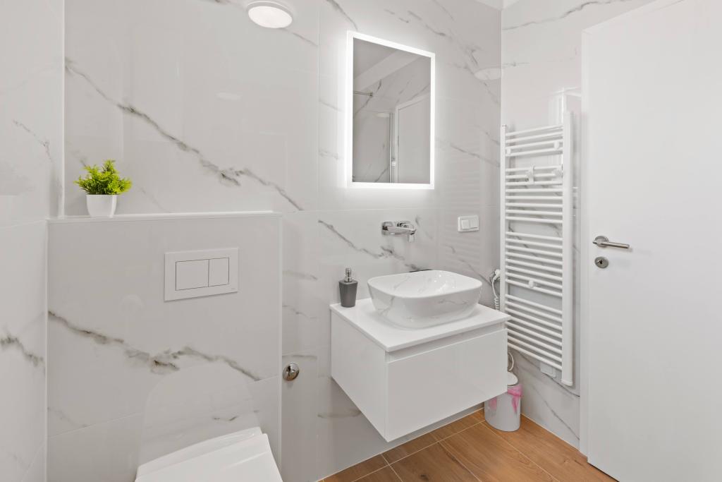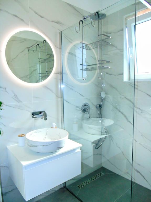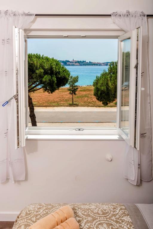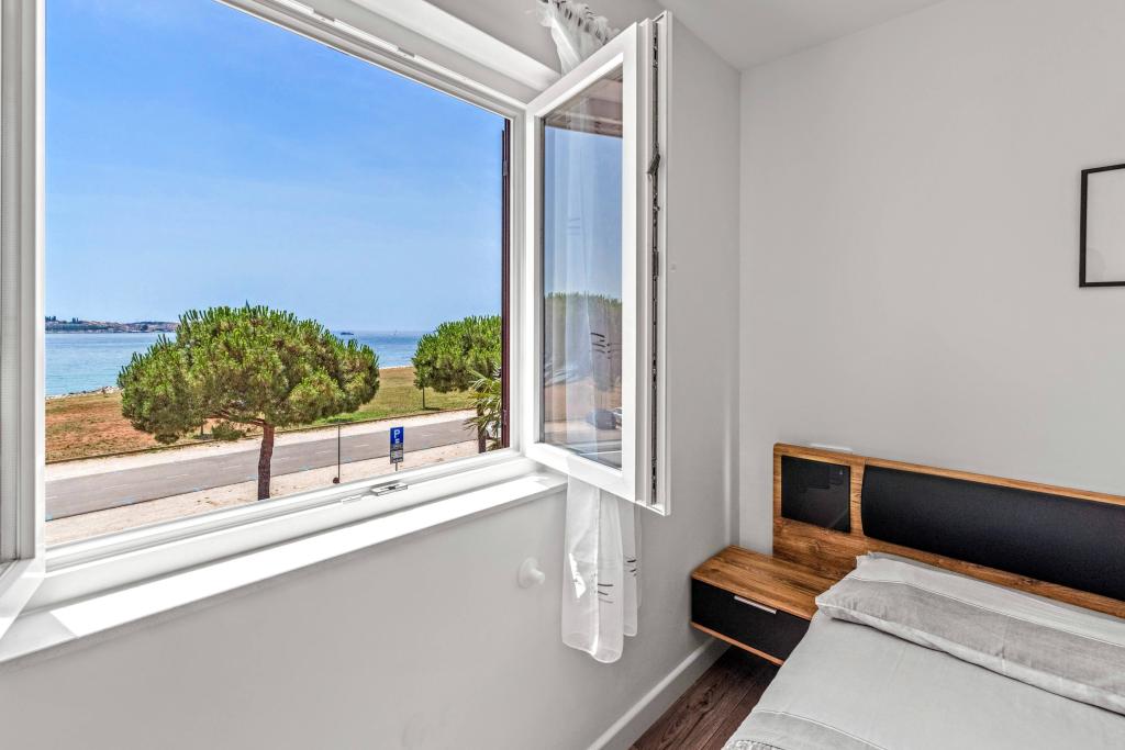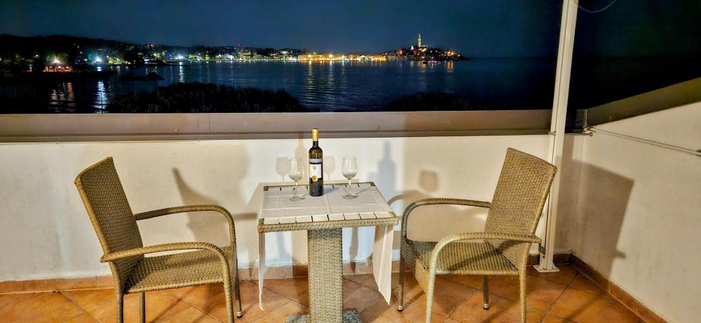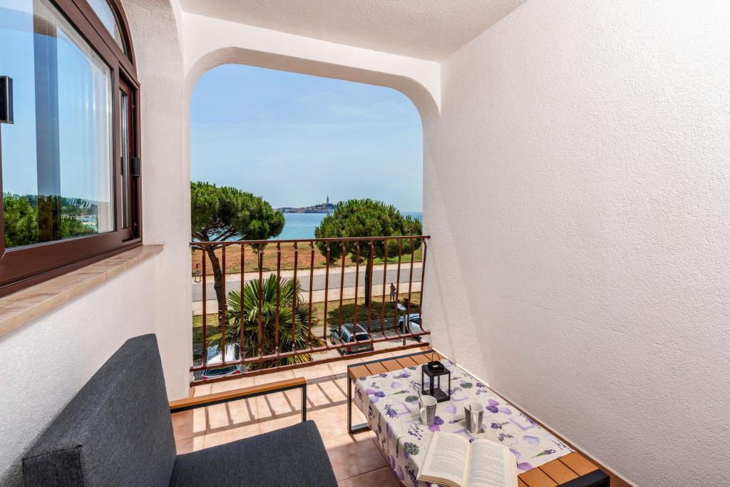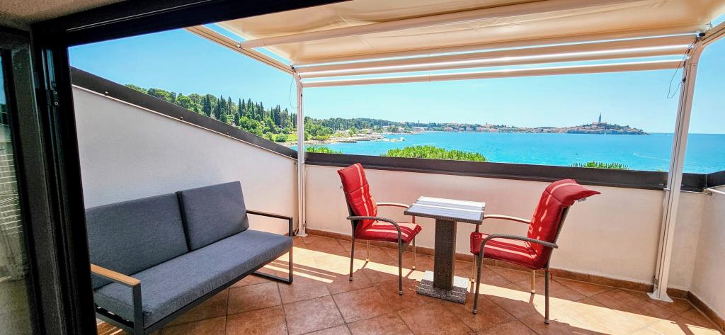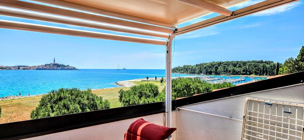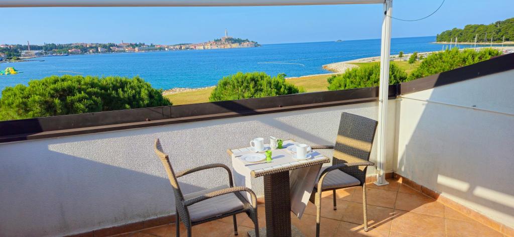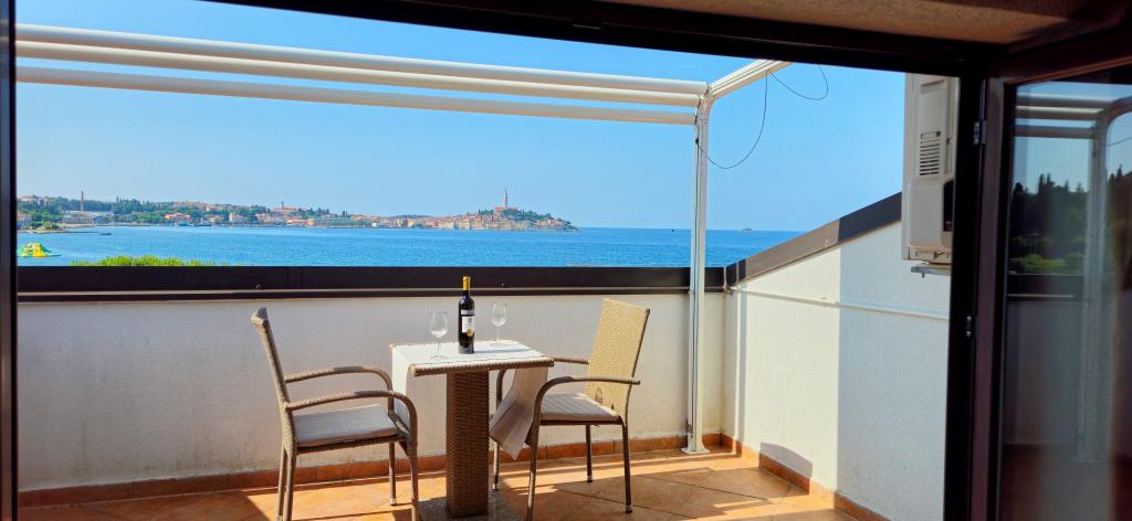 40 metrov od morja in plaže, 3 nova apartmaja v Rovinju, prva vrsta! Čudovit razgled na morje in Rovinjski zaliv ter staro mestno jedro Rovinja! Vsak apartma ima teraso s pogledom na morje in Rovinj, mizo in stole ter zaščito pred soncem.