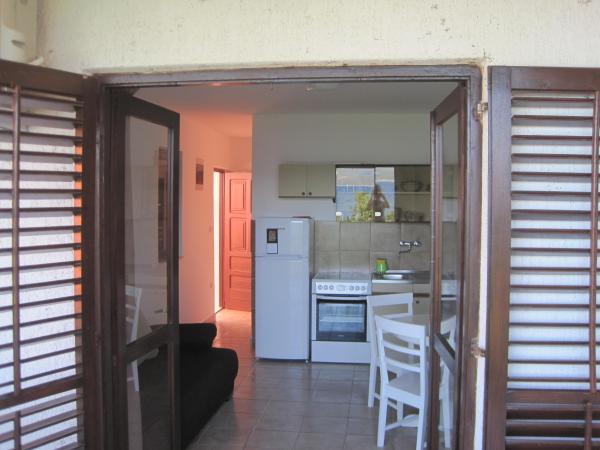 Idealno za dopustnike z avtomobilom, romantike, ki ljubijo samoto, čisto plažo. Na plaži je malo ljudi, hiša je oddaljena 2-3 korake, greste skozi vrata - in vaša plaža, vsaka vila ima svoje ležalnike, tam je ogromen bor, pod katerim se lahko namestijo vsi dopustniki. Čudovit balkon s pogledom na morje, spodaj rastejo kiviji, majhen vrt s pomarančami ali limonami, prostor za žar. Vzmetnice so udobne, postelje široke. Edina stvar je bila, da je bilo v spalnicah zelo vroče, ker je klimatska naprava samo v kuhinji. Tam je kavč. Prosili smo za ventilatorje in so nam jih dali. Ampak bolje bi bilo, če bi imeli klimatske naprave.