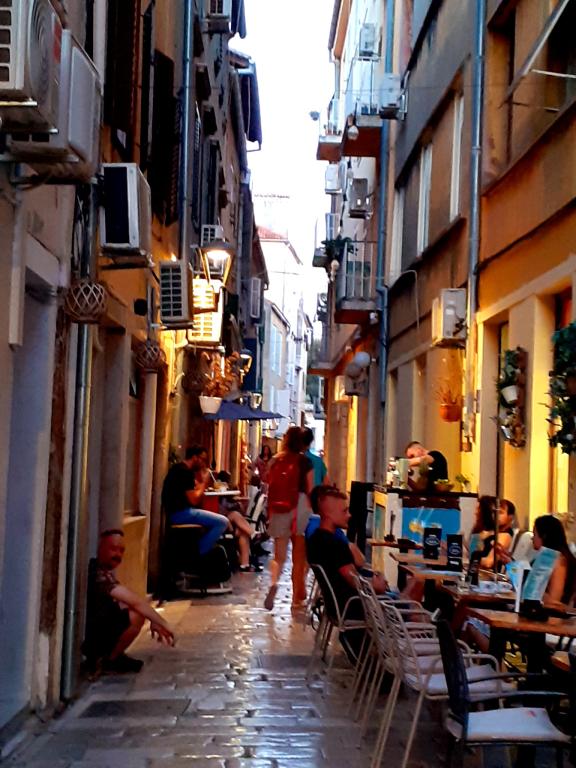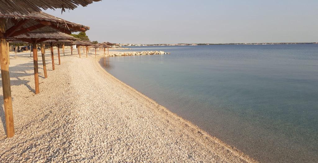 Kuhinja je opremljena s pomivalnim strojem, mikrovalovno pečico, aparatom za kavo in hladilnikom. . in tudi možnost uporabe žara, omogočamo tudi, da prinesete svojo posteljnino in se potem dogovorimo za popust pri ceni. V krogu 300 m so trgovina, pekarna in restavracije. Znano turistično središče ZATON se nahaja 2 km stran. Tudi mesto NIN s številnimi restavracijami, trgovinami ter tržnico Tomi in Konzum je oddaljeno 1 km. .