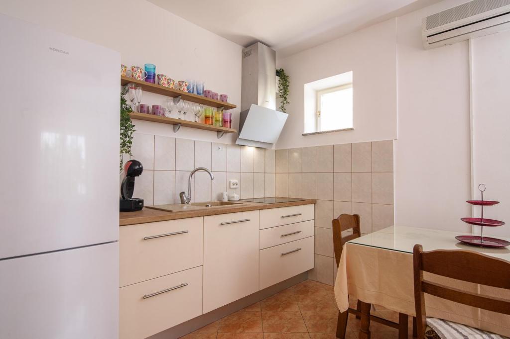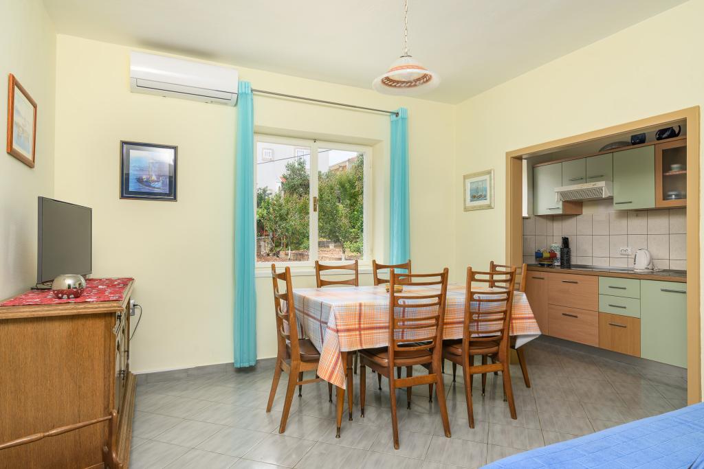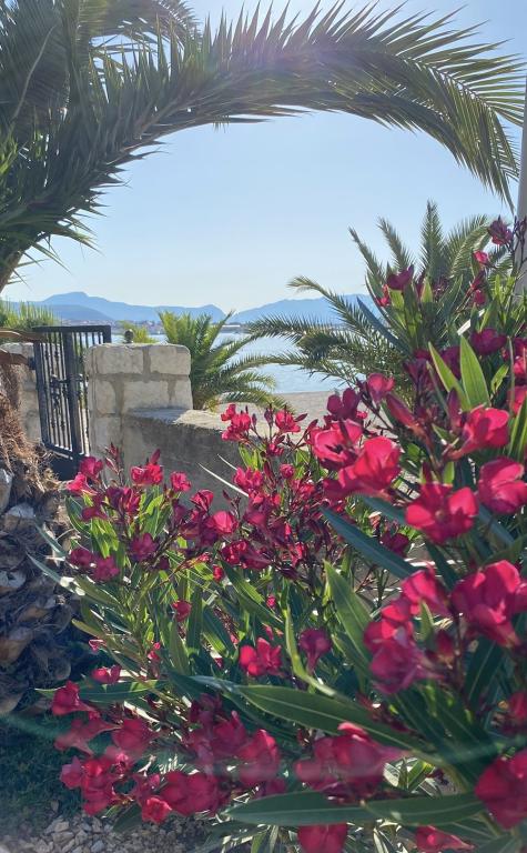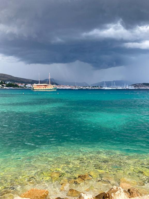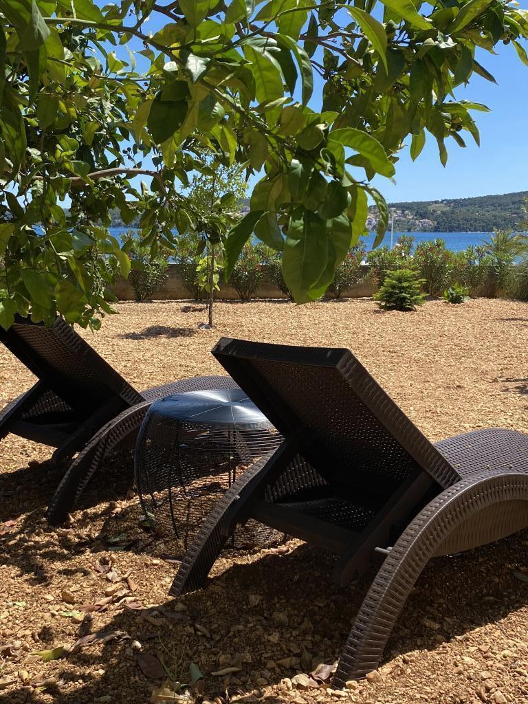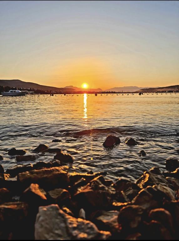 Popolnoma opremljeno stanovanje v mirnem okolju. Nahaja se v prvi vrsti do morja, 10 m do plaže. Apartma se nahaja 20 minut hoje od centra in 40 minut hoje od mesta Trogir. V bližini je restavracija in kavarna.