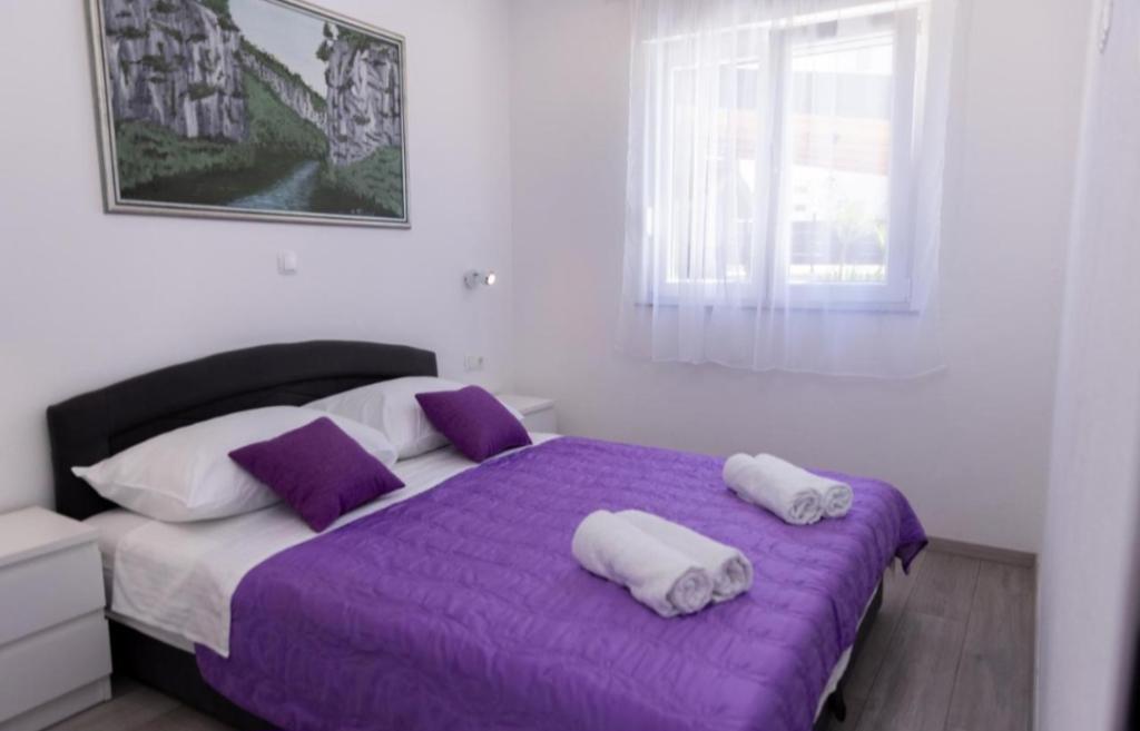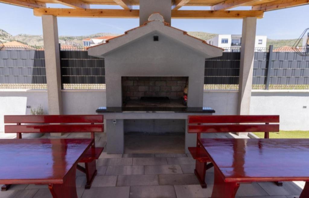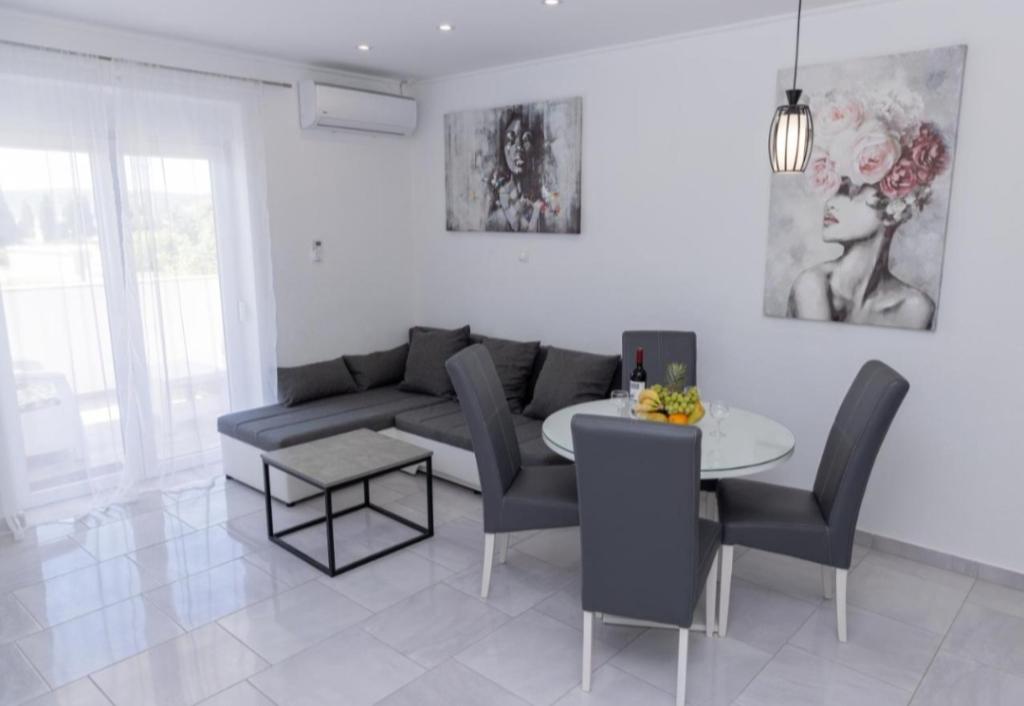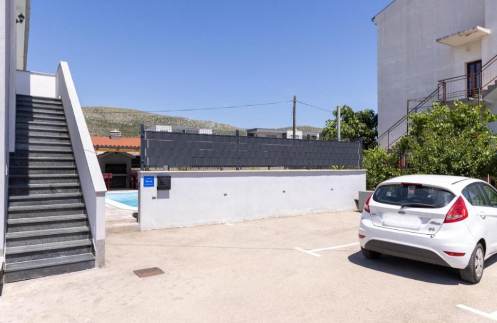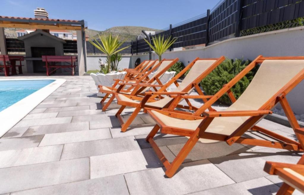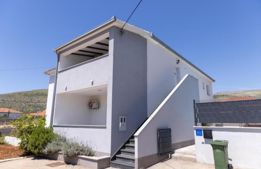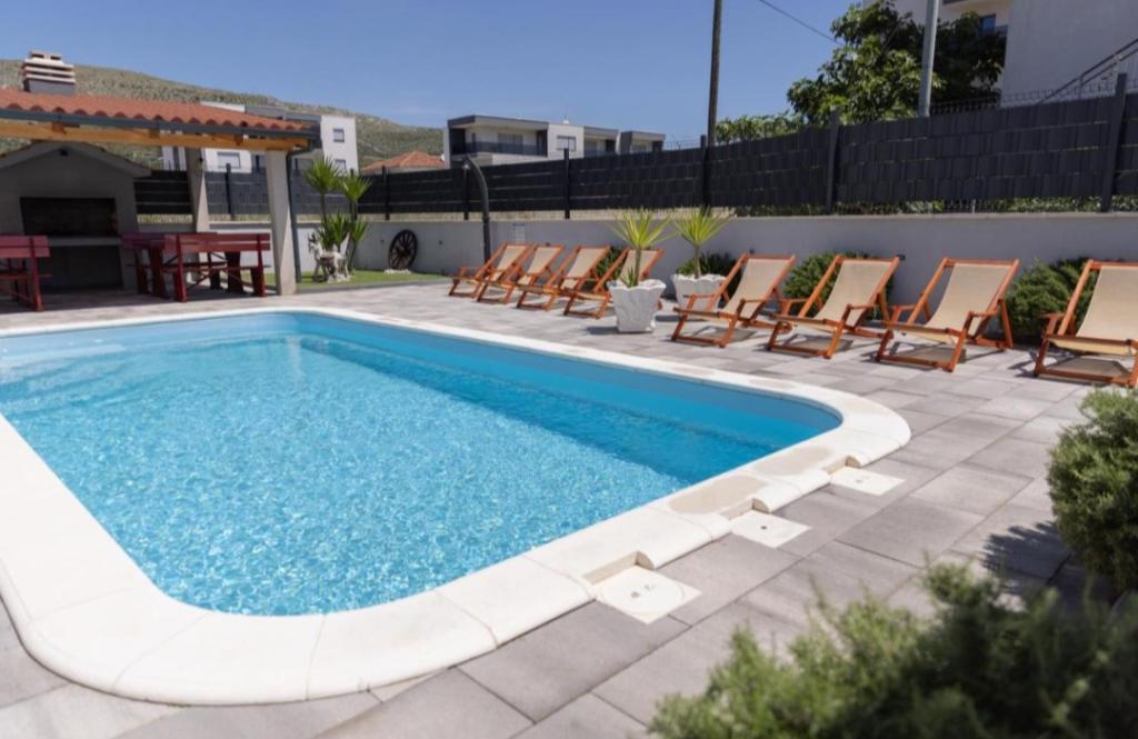 Novo opremljena vila v Segetu Donjem. Vsebuje 2 apartmaja po 65 m2. Vsak apartma ima eno kopalnico, dve spalnici z zakonsko posteljo. Vsak apartma ima prostorno dnevno sobo. Vila ima vrt 168 kvadratnih metrov, bazen 30 kvadratnih metrov, zunanji žar, ležalnike za počitek, firepolo gole za bazen. Oba apartmaja imata pogled na bazen in morje. Marina Baotić je oddaljena 100 m. Trgovina Tommy je oddaljena 50 metrov, znotraj katere je trgovina s svežim kruhom, pecivom in svežim mesom. Restavracija Barba, kavarna in lekarna sta oddaljeni 50 m. Vila se nahaja na meji Trogirja in Segeta Donjeg.