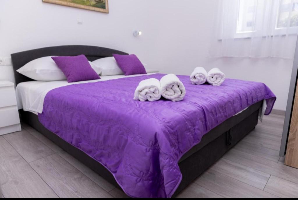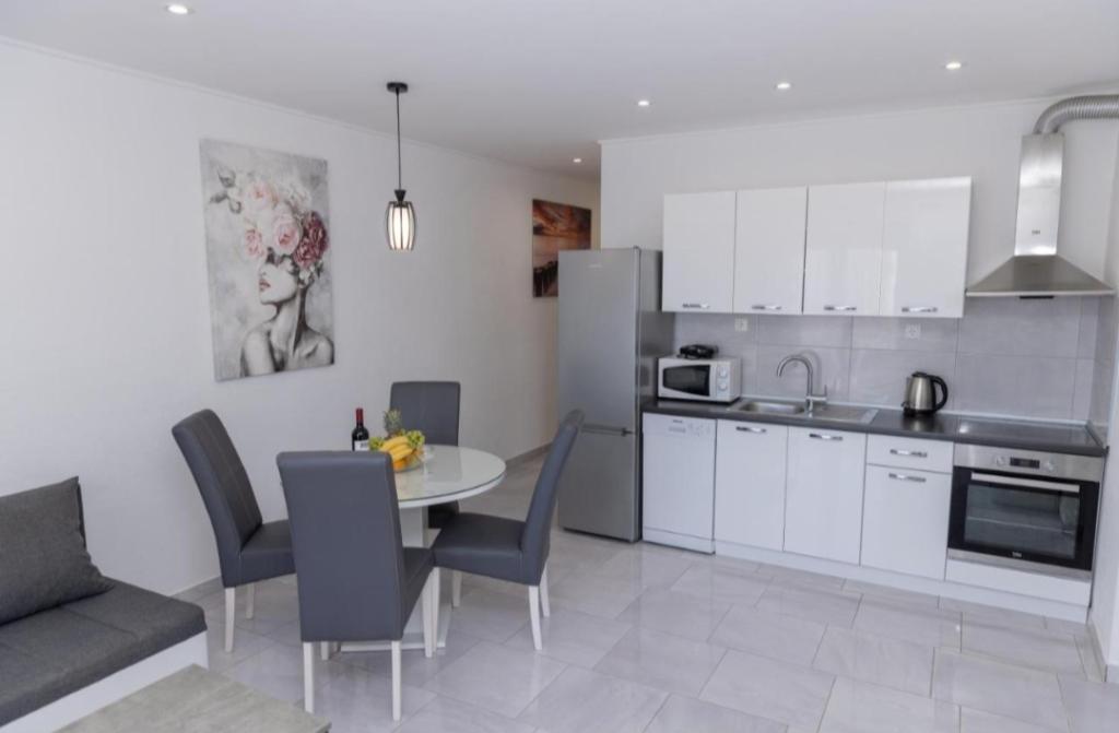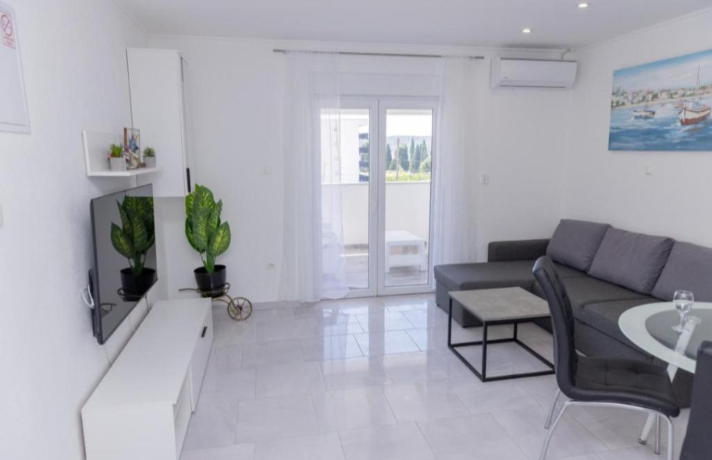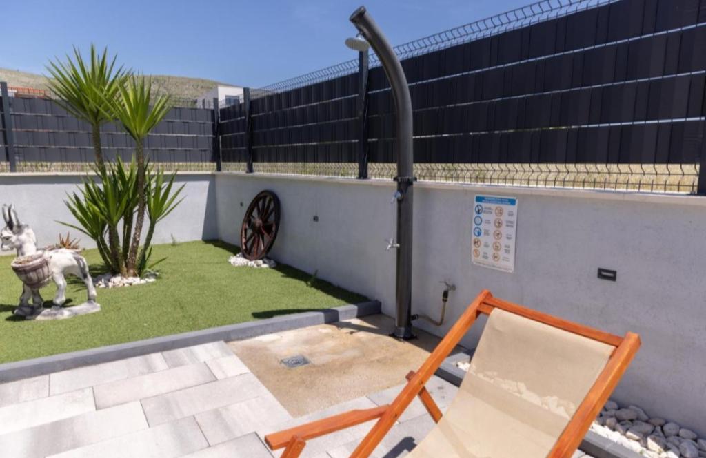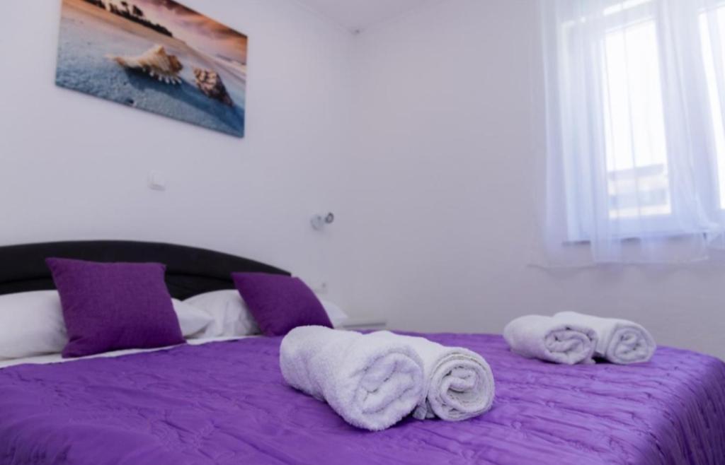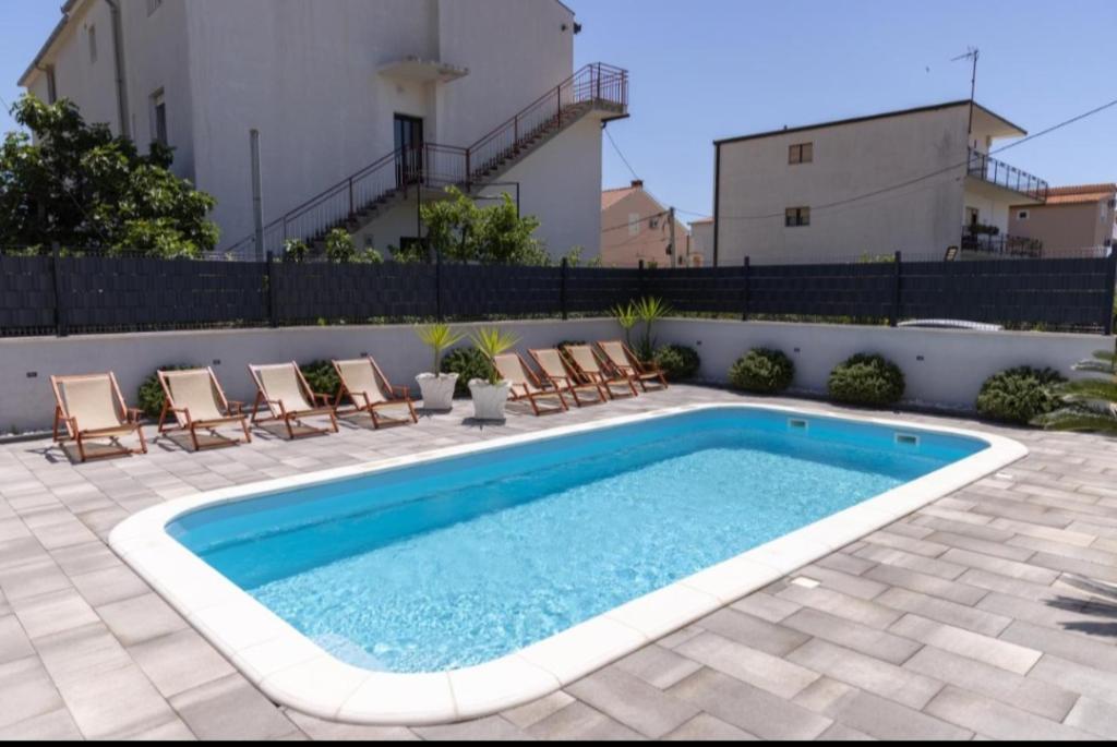 Novo opremljena vila v Segetu Donjem. Vsebuje 2 apartmaja po 65 m2. Vsak apartma ima eno kopalnico, dve spalnici z zakonsko posteljo. Vsak apartma ima prostorno dnevno sobo. Vila ima vrt 168 kvadratnih metrov, bazen 30 kvadratnih metrov, zunanji žar, ležalnike za počitek, firepolo gole za bazen. Oba apartmaja imata pogled na bazen in morje. Marina Baotić je oddaljena 100 m. Trgovina Tommy je oddaljena 50 metrov, znotraj katere je trgovina s svežim kruhom, pecivom in svežim mesom. Restavracija Barba, kavarna in lekarna sta oddaljeni 50 m. Vila se nahaja na meji Trogirja in Segeta Donjeg.