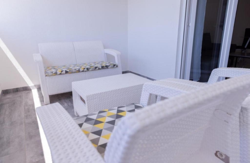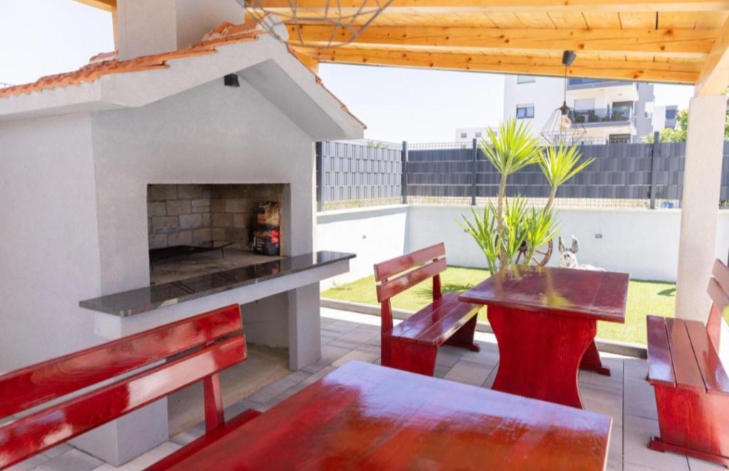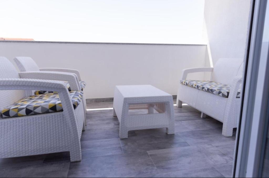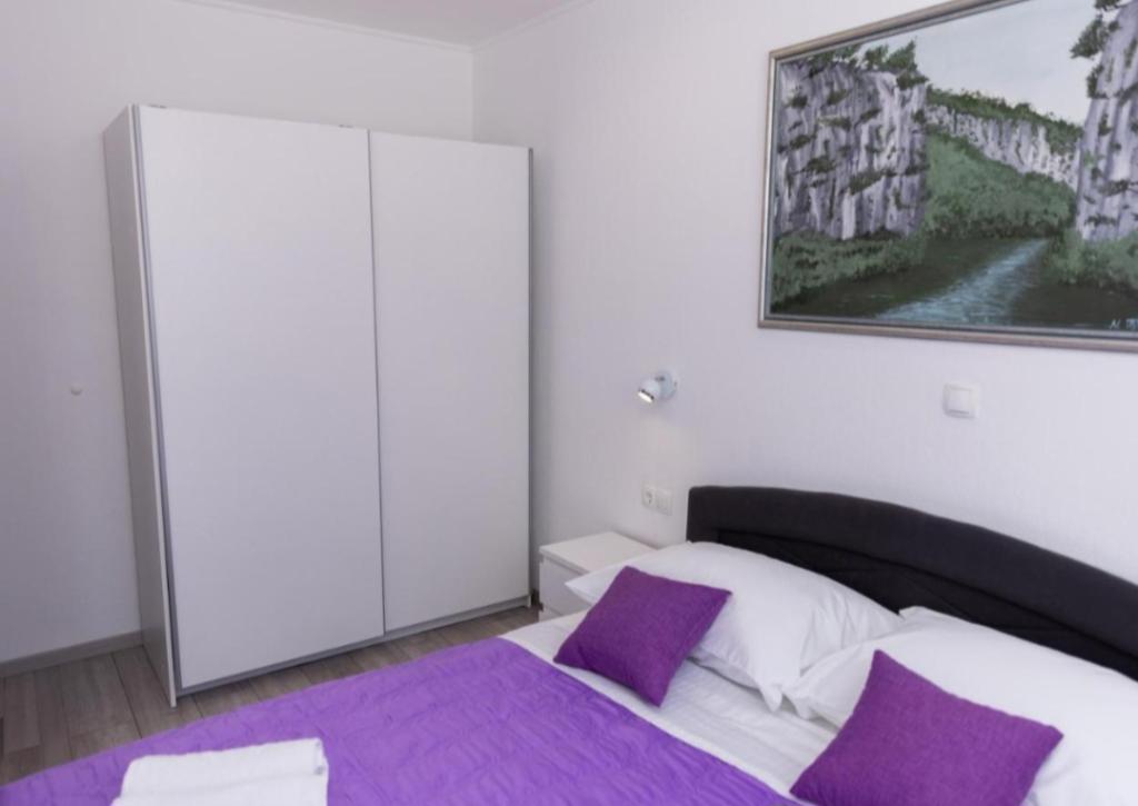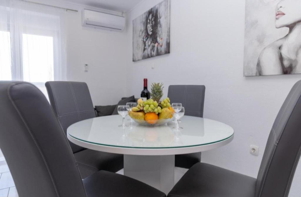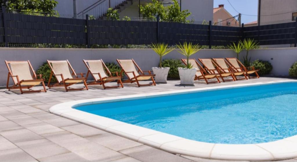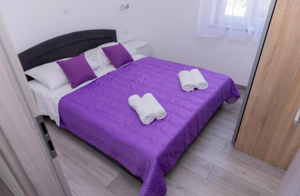 Novo opremljena vila v Segetu Donjem. Vsebuje 2 apartmaja po 65 m2. Vsak apartma ima eno kopalnico, dve spalnici z zakonsko posteljo. Vsak apartma ima prostorno dnevno sobo. Vila ima vrt 168 kvadratnih metrov, bazen 30 kvadratnih metrov, zunanji žar, ležalnike za počitek, firepolo gole za bazen. Oba apartmaja imata pogled na bazen in morje. Marina Baotić je oddaljena 100 m. Trgovina Tommy je oddaljena 50 metrov, znotraj katere je trgovina s svežim kruhom, pecivom in svežim mesom. Restavracija Barba, kavarna in lekarna sta oddaljeni 50 m. Vila se nahaja na meji Trogirja in Segeta Donjeg.