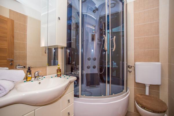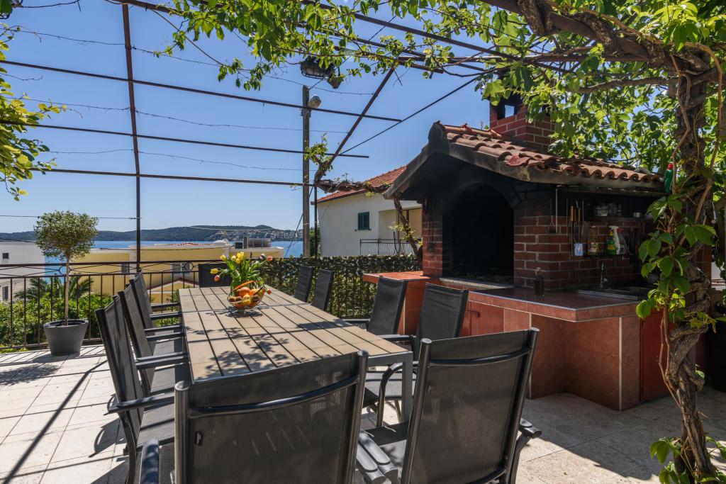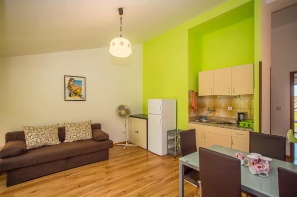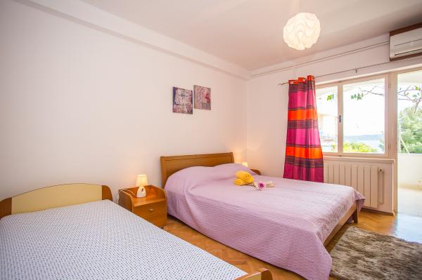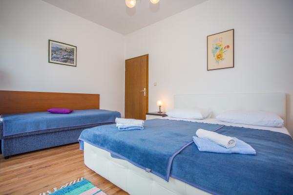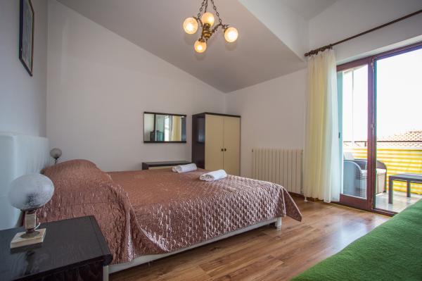 Villa Ivanka se nahaja 50 m od morja. Ima 11 apartmajev, vsi s pogledom na morje, za 2, 3, 4 ali 5 oseb. Vsi apartmaji so dobro opremljeni (klima, SAT / TV, centralno ogrevanje), z balkonom ali teraso. Gostje lahko uporabljajo žar, ki se nahaja na veliki skupni terasi. Villa Ivanka se boste počutili zelo udobno in uživali dopust v oazi lepote, čisto morje in kakovostno nastanitev v mediteranskem okolju. PRITLIČJE: Prvi apartma 3 2, 45m2 terasa 8m2, pogled na morje: 1 spalnica z zakonsko posteljo in enim ležiščem - Kavč za 2 osebi v dnevni sobi - Klima 2. apartma 2 2, 45m2 terasa 8m2, pogled na morje - 1 spalnica z zakonsko posteljo - Nočitev za 2 osebi v dnevni sobi - Klima NADSTROPJE: 3. apartma 2 2, 45m2 terasa 8m2, pogled na morje - 1 spalnica z zakonsko posteljo - Nočitev za 2 osebi v dnevni sobi - Klima 4. apartma 3 2, 45m2 terasa 8m2, pogled na morje (dve spalnici) - 1 spalnica z zakonsko posteljo posteljo za 1 osebo - Spalnica z zakonsko posteljo - Klima Sedmi studio 2,18m2 - Zakonska postelja 8. apartma 2 1, 24m2 terasa 4,5 m2, pogled na morje 1 spalnica z zakonsko posteljo - Klima 9. apartma 3 2, 45m2 terasa 16m2, pogled na morje - 1 spalnica z zakonsko posteljo posteljo za 1 osebo - 1 spalnica z zakonsko posteljo - Klima 10. stu