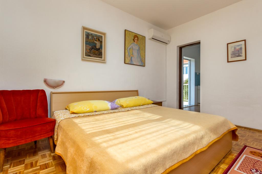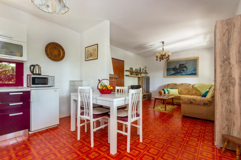 Hiša ima 2 etaži, obdana z zelenjem in vrtom, velik vrt, mirno okolje, ptičje žvrgolenje, obrnjena na jug, sončna stran.Oddaljenost 50 m od morja, nekaj minut hoje do centra, v bližini kampa ki ima brezplačen bazen za uporabo itd.