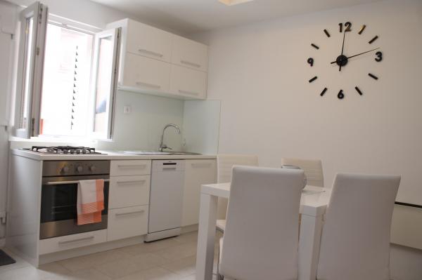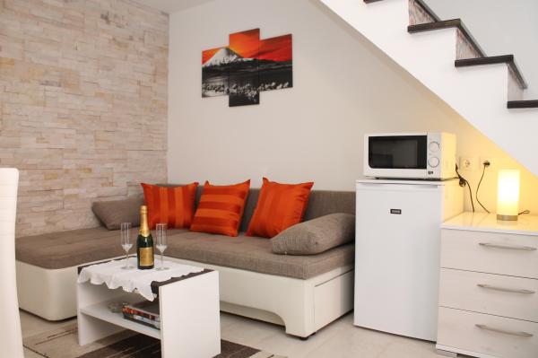 Julija smo ostali v stanovanju. Pogovorite se z gospo Ines popolno. Pisali smo SMS, nam opisali pot in nas lepo sprejeli. Apartma natanko tako, kot je opisano, čeprav majhen, a lep in čist !! Spalnica spalnice, kjer spijo dve odrasli osebi, spodaj pa v dnevni sobi s kuhinjskim kavčem, kjer dve osebi udobno spijo. Stanovanje je v mirni ulici, vendar le nekaj metrov od centra in pristanišča. Čudovita peščena plaža, primerna za majhne otroke, je nekoliko dlje od omenjene, približno 10 minut počasne hoje. (Na žalost se v sezoni na glavo, zato si raje izposodimo ležalnike, da imamo svoj prostor. 2 ležalnika in dežnik približno 350 CZK) Ob obali veliko restavracij in lepih sprehodov zvečer.