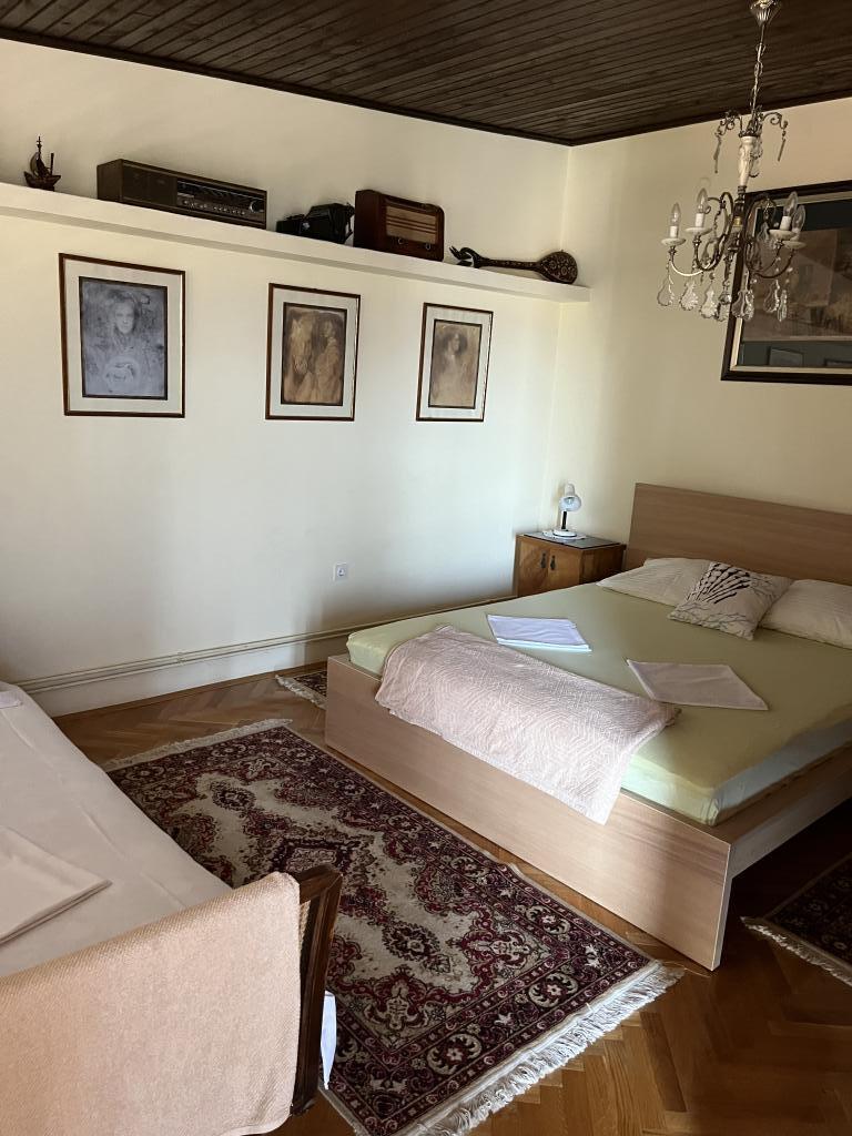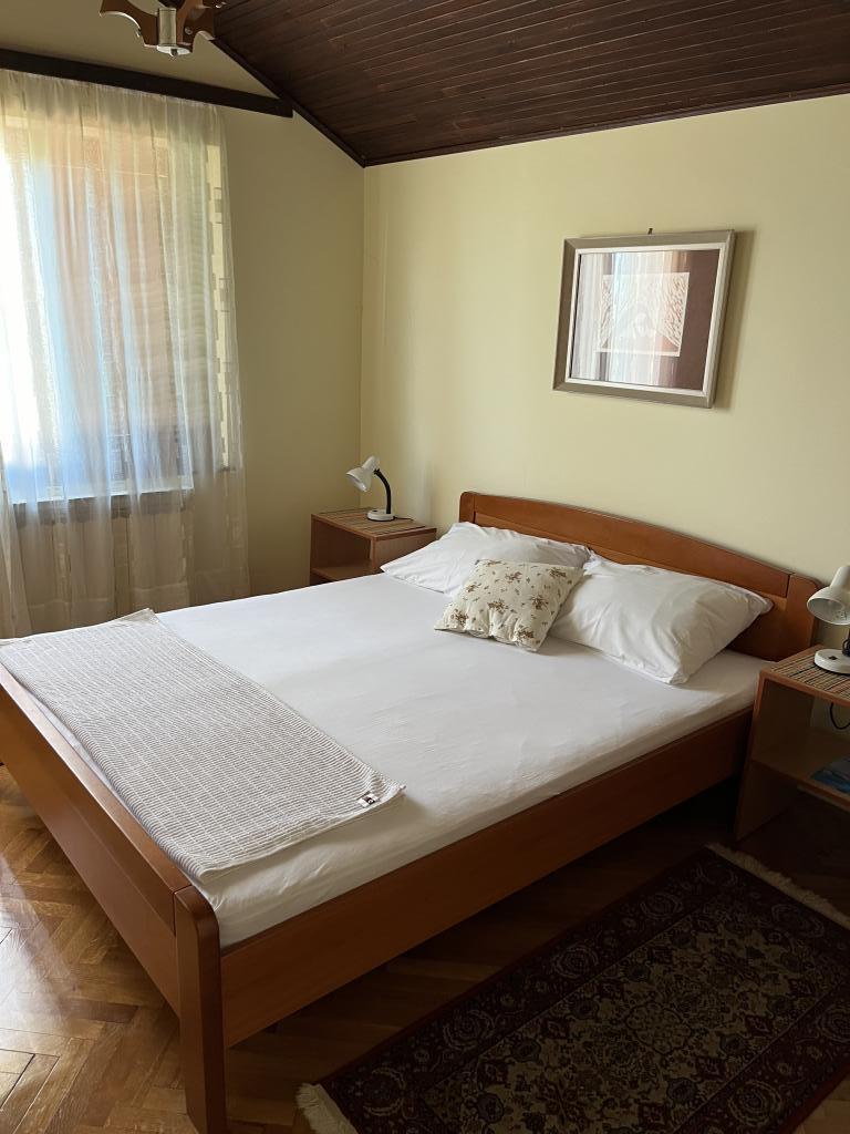 Apartma za 4+1 (max. 5 oseb), 150 m od morja, 7-10 min od centra, čudovit pogled na morje z velikega balkona, zelenilo, klima, brezplačen internet wi-fi, SAT TV, kuhinja s priborom , WC, kopalnica, 2 spalnici in dnevna soba, parkirni prostor. Cena je odvisna od termina in števila oseb (minimalno bivanje je 5 noči). Cena vključuje turistično takso.