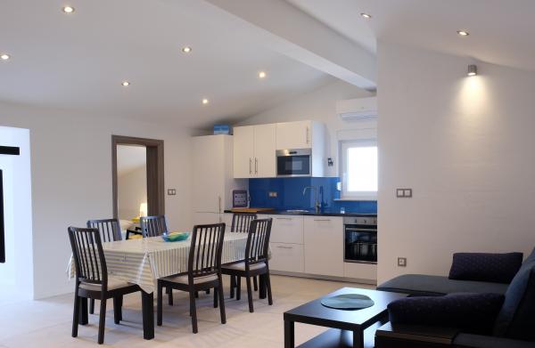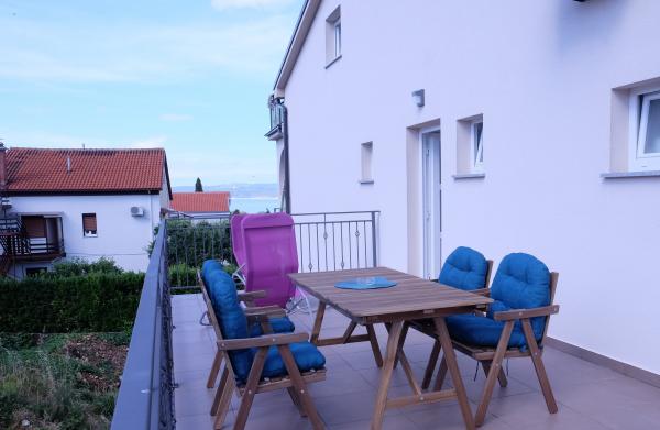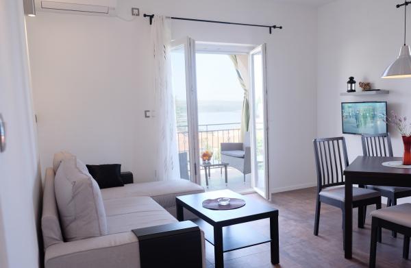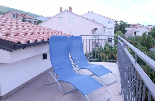 Popolnoma in moderno opremljeni apartmaji v mirnem predelu Selca, s čudovitim razgledom na otok Krk in Kvarner. Objekt se nahaja 3 minute od centra, ki ponuja različne ugodnosti: banka, pošta, lekarna, trgovine, bari, restavracije... Objekt ima veliko dvorišče in parkirišče. Hišni ljubljenčki so dobrodošli. MODRI apartma se nahaja v mansardi in ponuja vse ugodnosti opremljenega apartmaja. Na voljo so kuhinjski aparati (hladilnik, zamrzovalnik, pomivalni stroj, pečica, mikrovalovna pečica...). Na balkonu je vrtno pohištvo in 2 ležalnika. RDEČI apartma se nahaja v drugem nadstropju in ponuja vso opremo, da bo vaš dopust prijeten. Na voljo so kuhinjski aparati (hladilnik, zamrzovalnik, pomivalni stroj, mikrovalovna pečica...). Na balkonu je vrtno pohištvo in 2 ležalnika. SIVI apartma se nahaja v drugem nadstropju, ima majhno kuhinjo s kuhinjskimi aparati za udobno bivanje (hladilnik, zamrzovalnik, pomivalni stroj, mikrovalovna pečica...) in eno sobo. Na balkonu je vrtno pohištvo in 2 ležalnika.