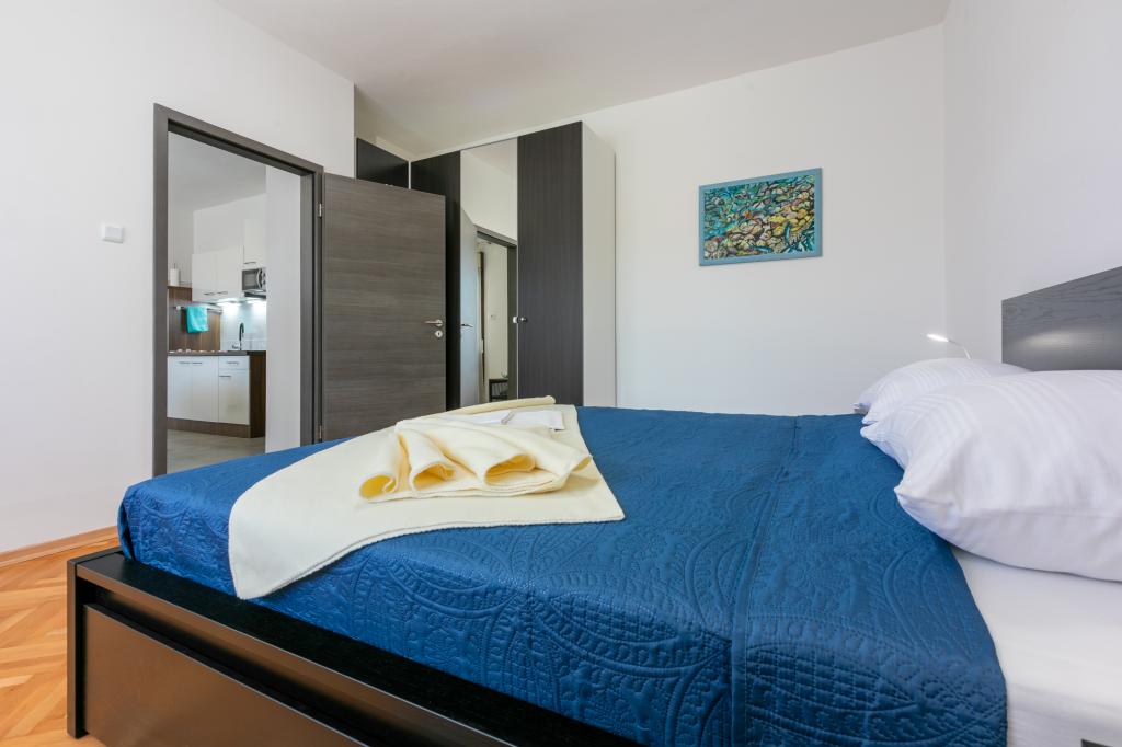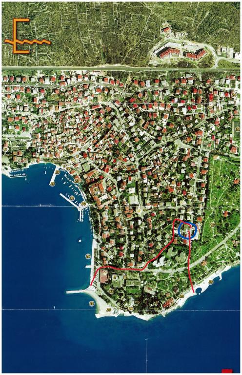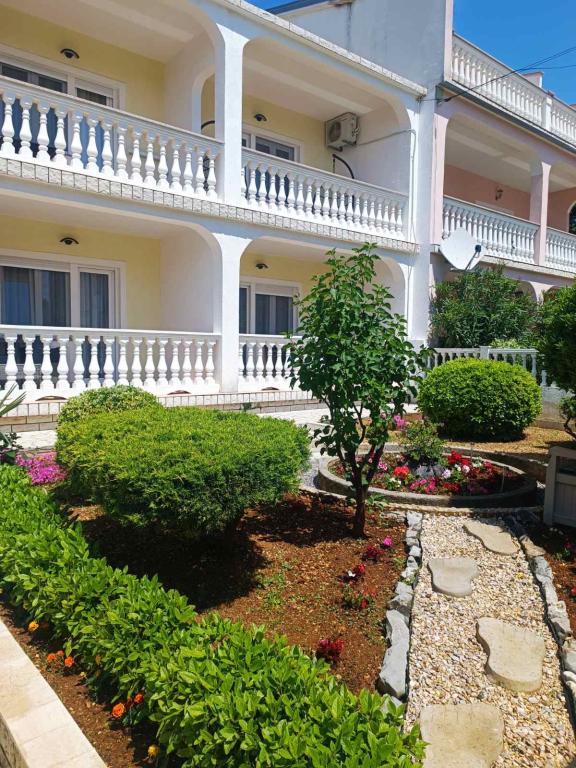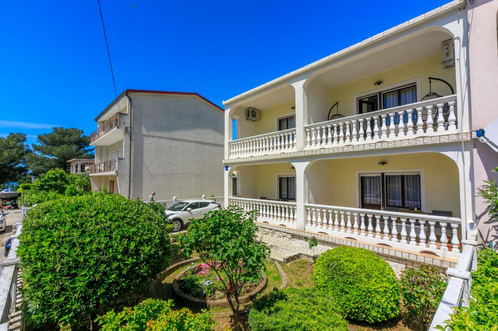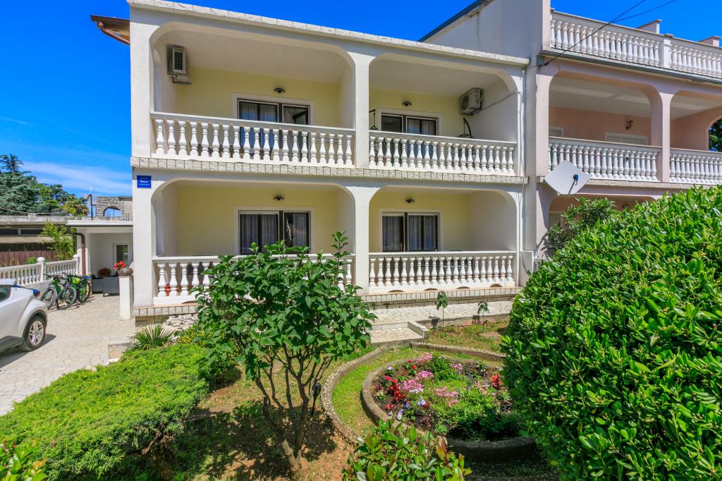 Apartmaji se nahajajo v družinski hiši, le nekaj minut hoje od morja in promenade s številnimi restavracijami, kavarnami, športnimi objekti in trgovinami. Apartma "Ema" (2+2) je sestavljen iz dvoposteljne sobe, kuhinje z jedilnico, kjer je raztegljiv kavč za dve osebi, ki se lahko raztegne v zakonsko posteljo, kopalnice in prostorne terase z žarom. Drugi apartma "Gita" (2+1) ima dvoposteljno sobo, prostorno kuhinjo z jedilnico z raztegljivim kavčem, kopalnico in prostorno teraso.
