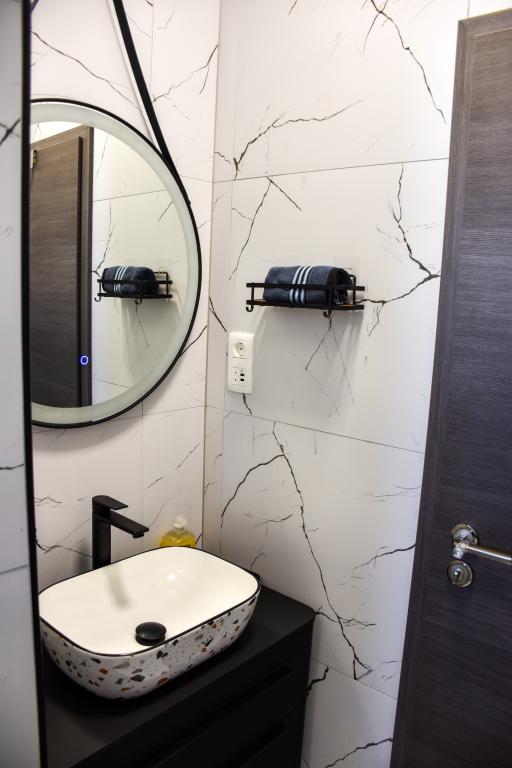 Turistična taksa je vključena v ceno. Dokument o potrditvi rezervacije ob rezervacijiOdličen apartma, ima vse, kar potrebujete, in več kot dovolj opreme. Je zelo moderen in sodoben, s prostornim balkonom. Plaža je oddaljena približno 3-5 minut hoje. Gospa, ki nas je sprejela, je bila res prijazna in ljubeča – vse pohvale! Hvala za tako lep dopust.