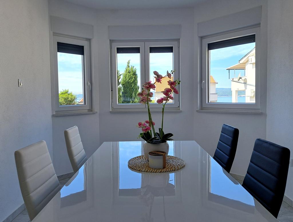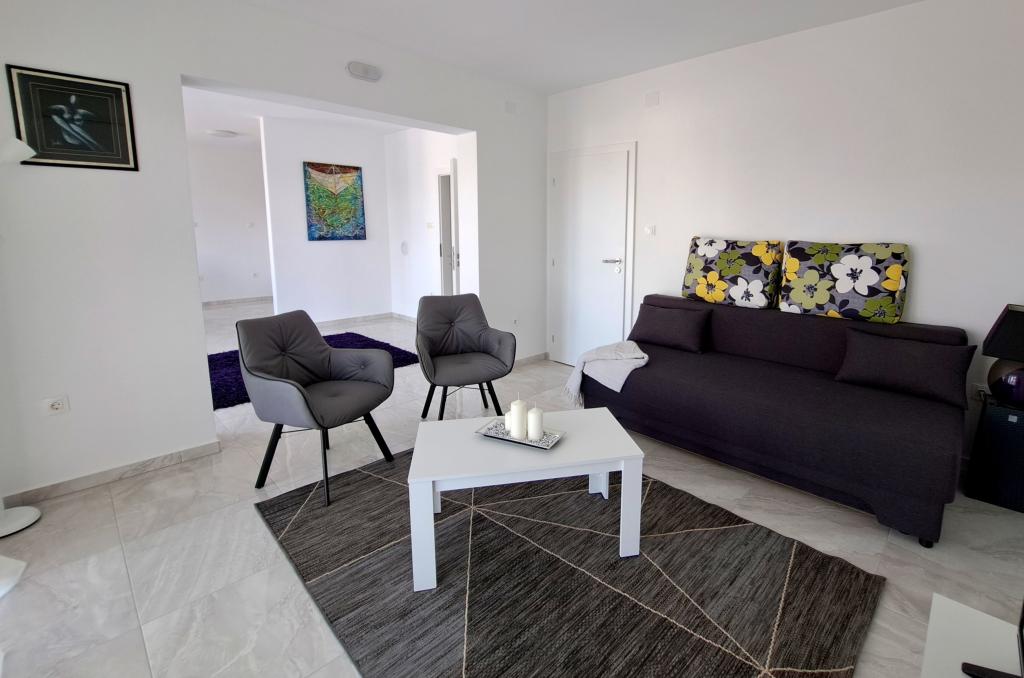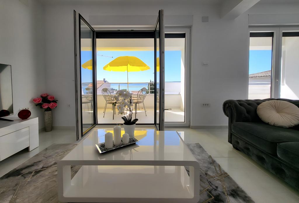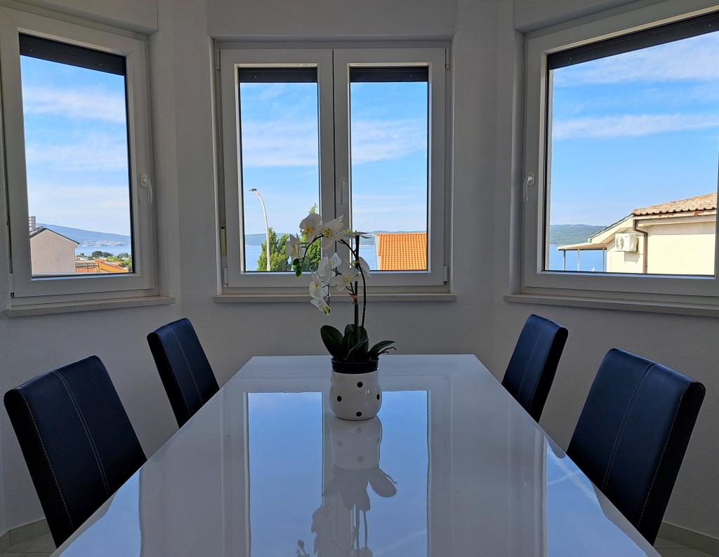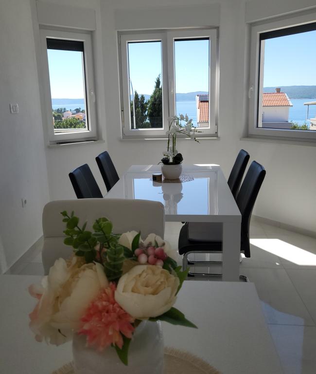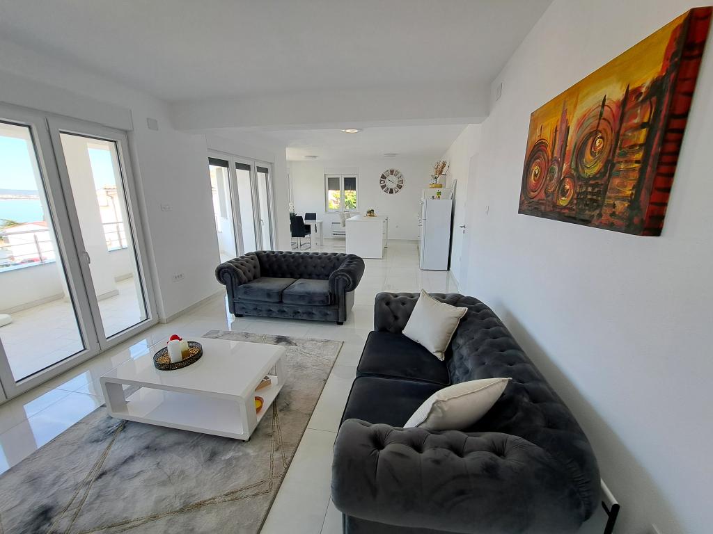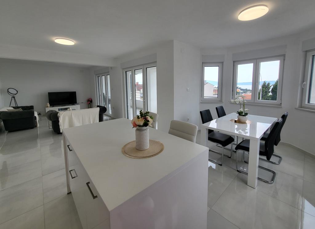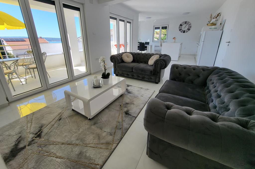 Novi apartmaji v središču Selc, blizu Crikvenice - nahajajo se v visokem pritličju in v 1. nadstropju hiše. Apartmaji so prostorni in zračni ter so sestavljeni iz dveh spalnic, kopalnice, hodnika, kuhinje, jedilnice in dnevne sobe "odprtega prostora" ter balkona. Imajo čudovit razgled na morje in plažo. Nahajajo se 2 minuti hoje od središča mesta, trgovin, promenade, plaže, restavracij in kavarn. Parkiranje je na dvorišču hiše. Klimatska naprava, wi-fi in parkirišče so vključeni v ceno namestitve. Cena vključuje turistično (bivalno) takso in čiščenje apartmaja. HIŠNI LJUBLJENČKI NISO DOVOLJENI.