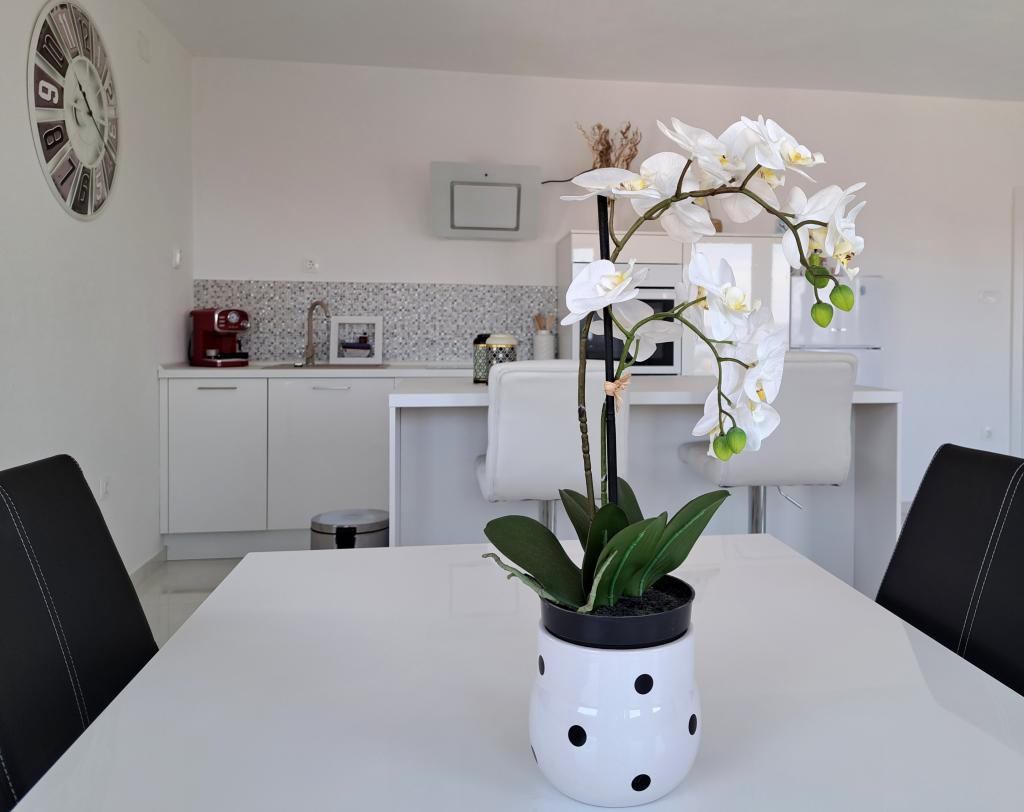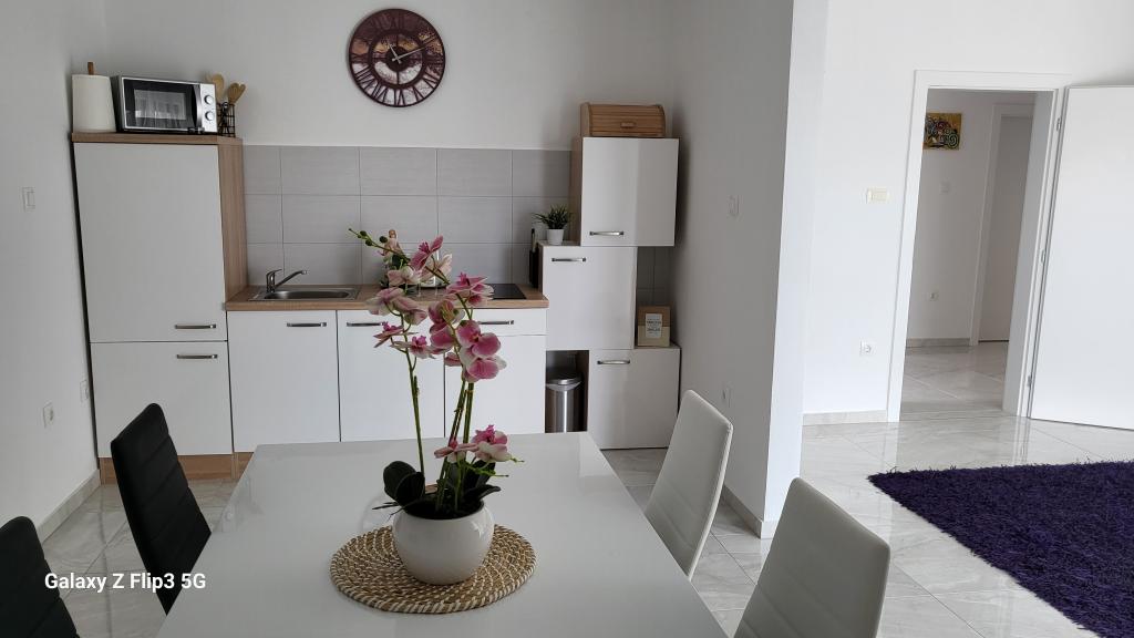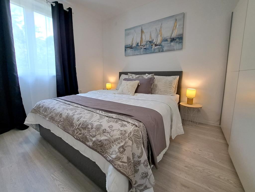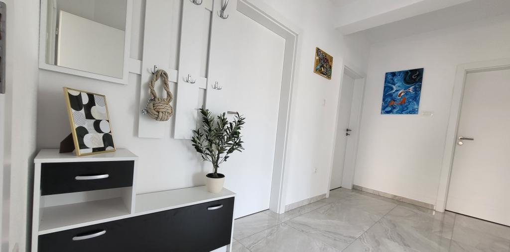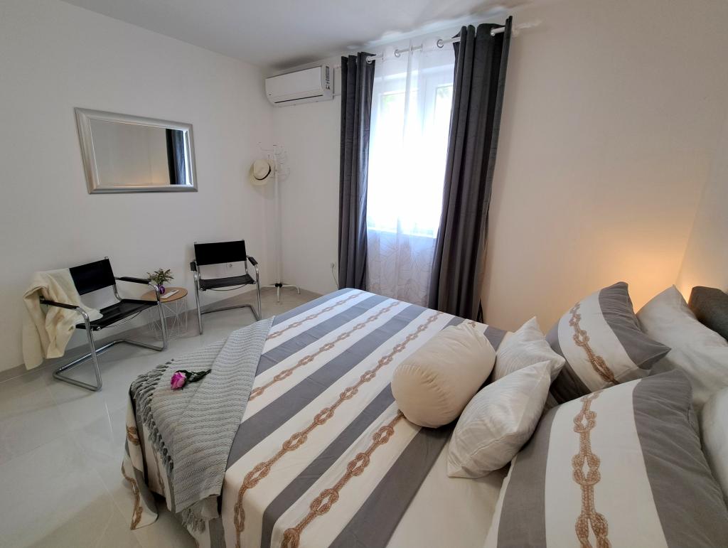 Ne iščite več! Idealno in popolno, tudi za nas z majhnim dojenčkom! Edita je idealna gostiteljica, ki gre še korak dlje, da vam zagotovi idealne počitnice! Lokacija in namestitev sta popolni! Nov objekt, stilsko opremljen z vso potrebno opremo, le 100 metrov od centra, plaže, tržnice, restavracije... Parkirišče na dvorišču z video nadzorom!