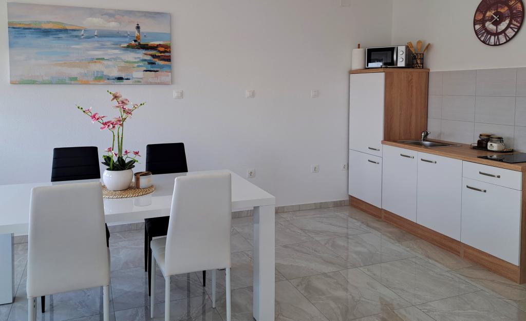Naše bivanje v teh apartmajih je bilo resnično čudovito! Oba apartmaja sta prostorna, izjemno svetla in lepo urejena – takoj smo se počutili kot doma. Ulica, na kateri se nahajata, je mirna in tiha, idealna za počitnice, a hkrati ste le nekaj minut hoje oddaljeni od obale, kar je kot nalašč za večerne sprehode ali jutranjo kavo ob morju. Posebej bi pohvalili lastnico, ki je izjemno prijazna, ustrežljiva in dobro organizirana – vse je bilo pripravljeno, čisto in nas je sprejela s pozornostjo do vsake podrobnosti. Velika prednost je zasebno parkirišče na dvorišču, kar je glede na bližino centra velika ugodnost. Apartmaji so idealni tudi za družine z majhnimi otroki – so varni, udobni in opremljeni za brezskrbno bivanje. Zelo priporočljivo vsem, ki iščejo udobno, mirno in kakovostno namestitev