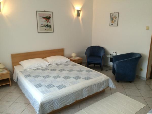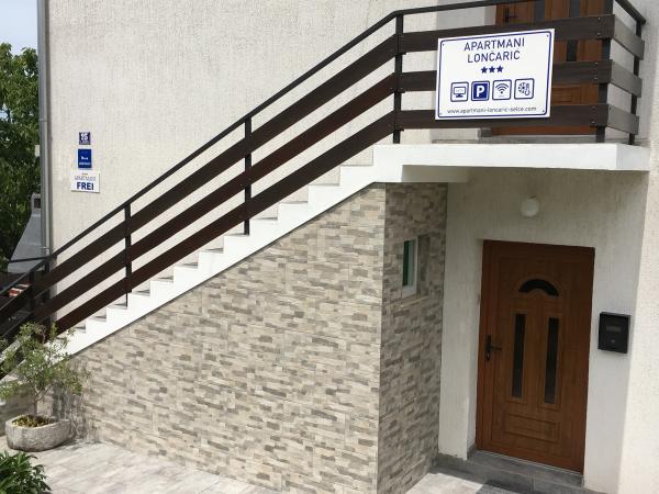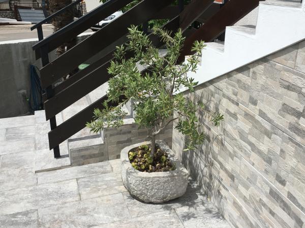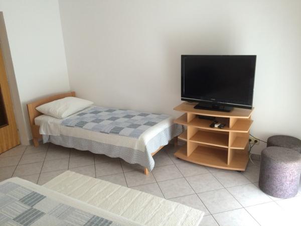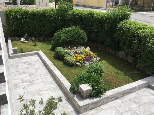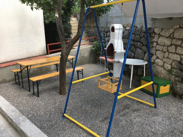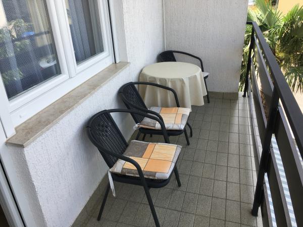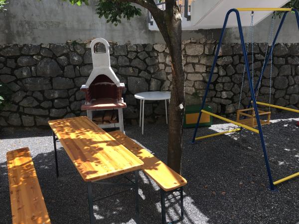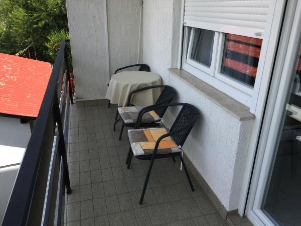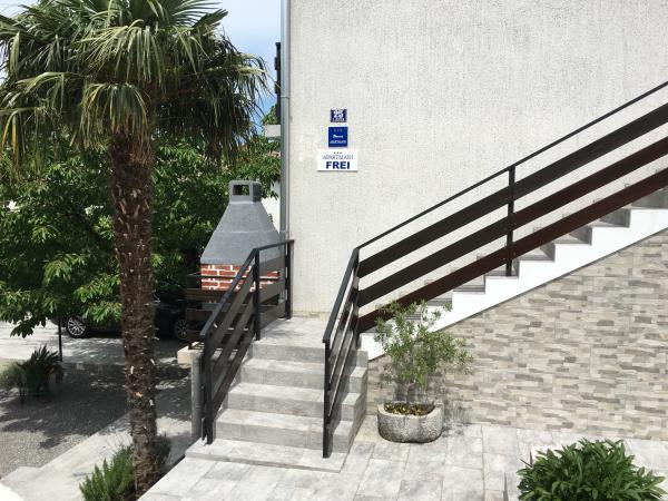 Apartmaji se nahajajo v družinski hiši na prvem nadstropju. Vsak apartma ima ločen vhod, balkon in parkirišče v dvorišču. Na dvorišču za hišo so na voljo za gugalnico in tobogan za otroke. Apartmaji so sestavljeni iz spalnice s tremi ležišči (otroška posteljica ali dodatno ležišče), popolnoma opremljeno kuhinjo z jedilnico, kopalnico z WC. Apartmaji so opremljeni s klimatsko napravo in satelitsko televizijo, in tam je brezplačna uporaba interneta.