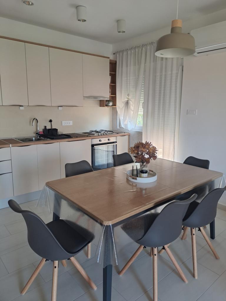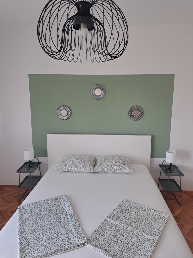 Apartmaji Nevia I nudijo namestitev v več apartmajih. Apartma 5+1 se nahaja v prvem nadstropju družinske hiše z izhodom na balkon, teraso in čudovitim pogledom na morje. Vsebuje opremljeno kuhinjo, jedilnico, dnevno sobo, dve spalnici z zakonsko posteljo, eno spalnico z dvema posteljama, TV, Wi-Fi, klimatsko napravo. Kopalnica s pralnim strojem. Parkirišče je na voljo na dvorišču hiše. Dva studio apartmaja se nahajata v pritličju z balkonom. Vsebujejo opremljeno kuhinjo, jedilno mizo, kavč, TV, Wi-Fi, zakonsko posteljo. Kopalnica s tušem in pralnim strojem. Prostor je klimatiziran. Parkirišče je na voljo na dvorišču hiše.