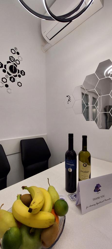 V apartmaju vas čaka pijača dobrodošlice in sadje. Kozmetika v kopalnici vključena v ceno.
