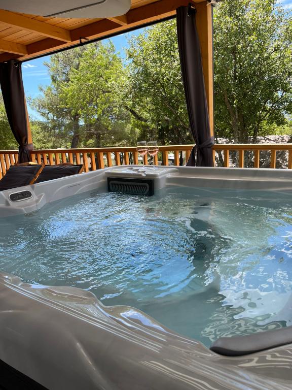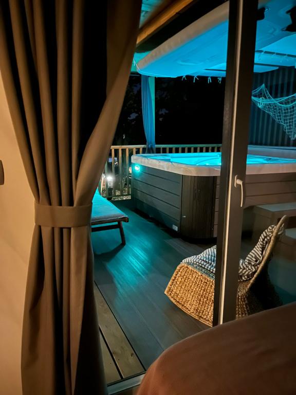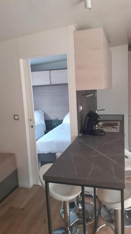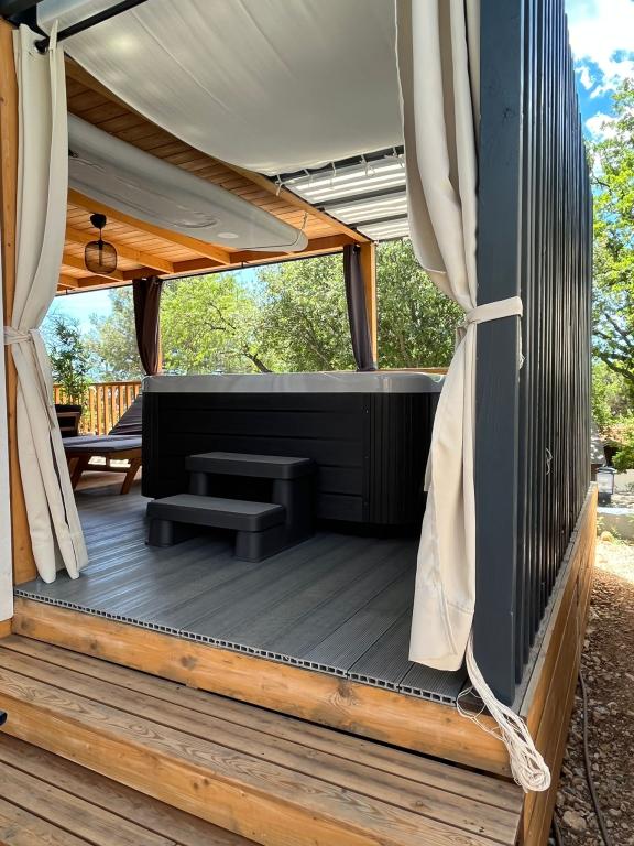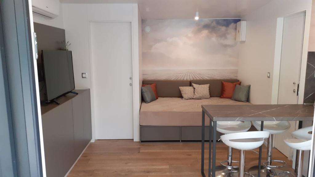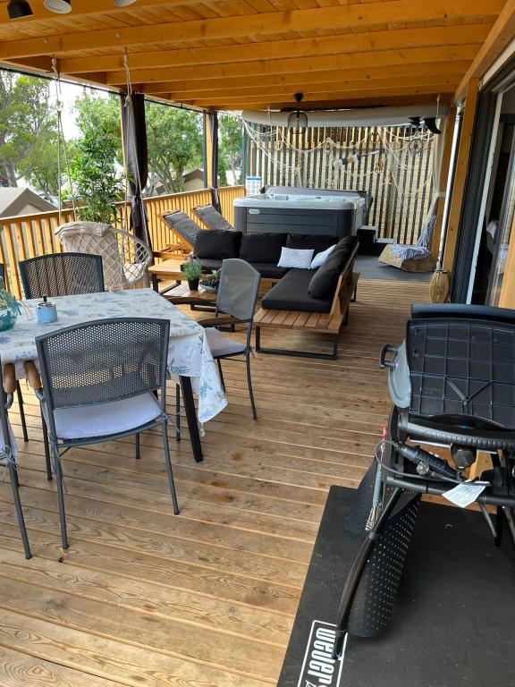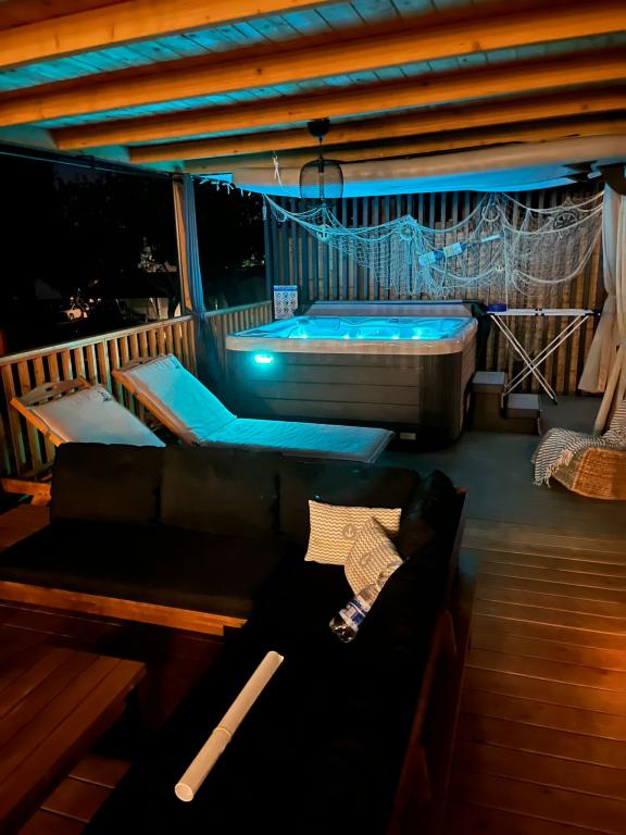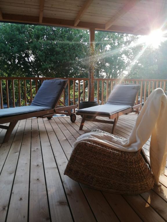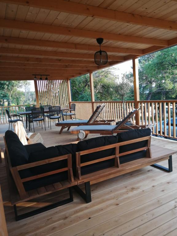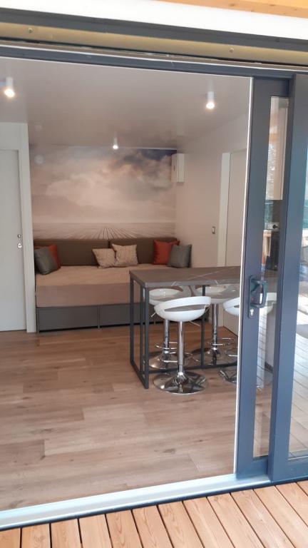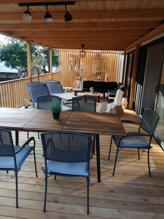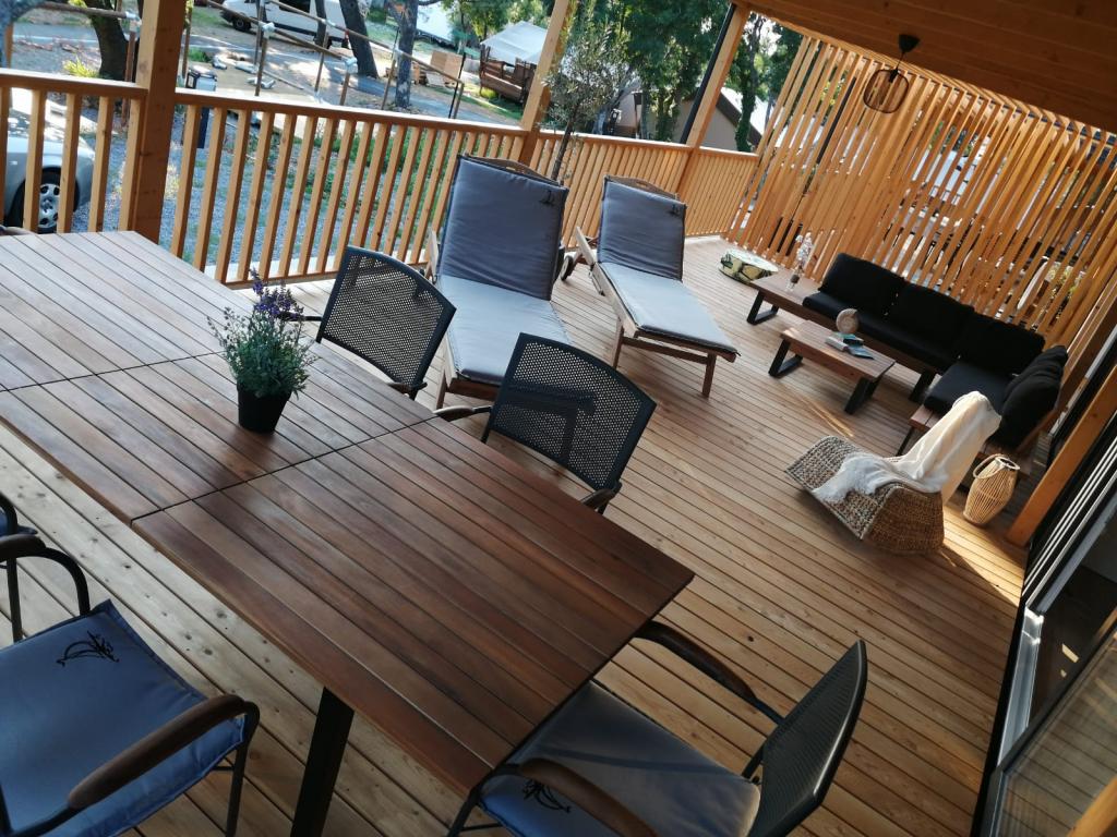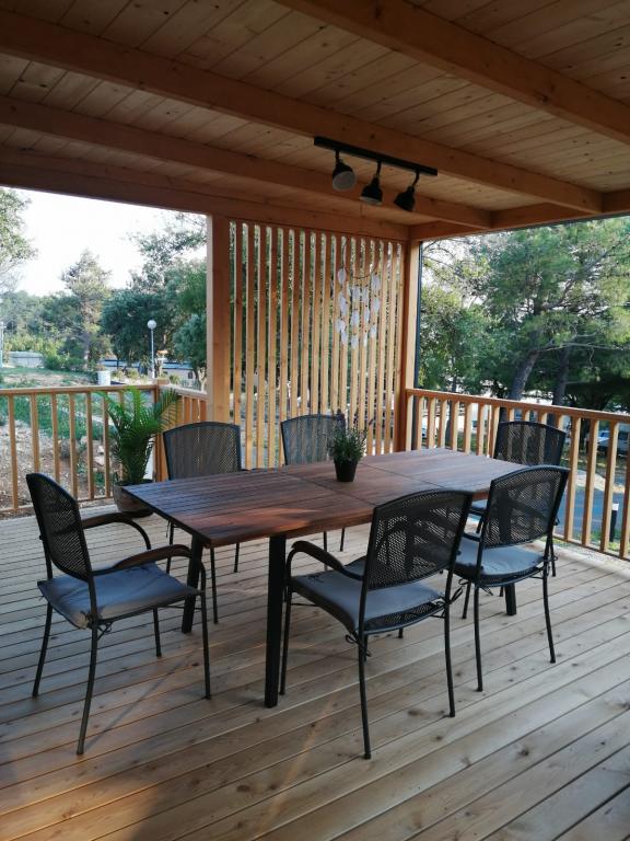 Želite nekaj drugačnega? Si želite sprostitve v okolju narave in miru? Nekje med nebom in morjem stoji naša nova mobilna hiška. Natančneje, nahaja se v kampu Elements v mirnem predelu Selc in je idealen za oddih vseh. Na prostorni parceli v neposredni bližini morja, točneje 120 metrov! V tišini neokrnjene narave smo hišo postavili tako, da izgleda kot oder do čudovitega morja, sonca in otoka Krka. Hiša je obdana z naravo. Začnite dan na terasi ob zvoku čričkov in vonju morja. Na 45 m2 se nahajajo jedilna miza in kotna sedežna garnitura za počitek ter dva udobna ležalnika. Ob strani terase vam je na voljo žar. Notranjost hiše ponuja vse, zato vam udobja in sprostitve v mediteranskem stilu ne bo manjkalo. Dve spalnici, kopalnice, popolnoma opremljena kuhinja, klima, internet, TV. Idealno za do 6 oseb! Zaprite oči in si predstavljajte ... da ste na čudovitem kraju, obdanem s svetlimi vodami Jadrana. Počastite se z nami in si spočijte dušo in telo.
