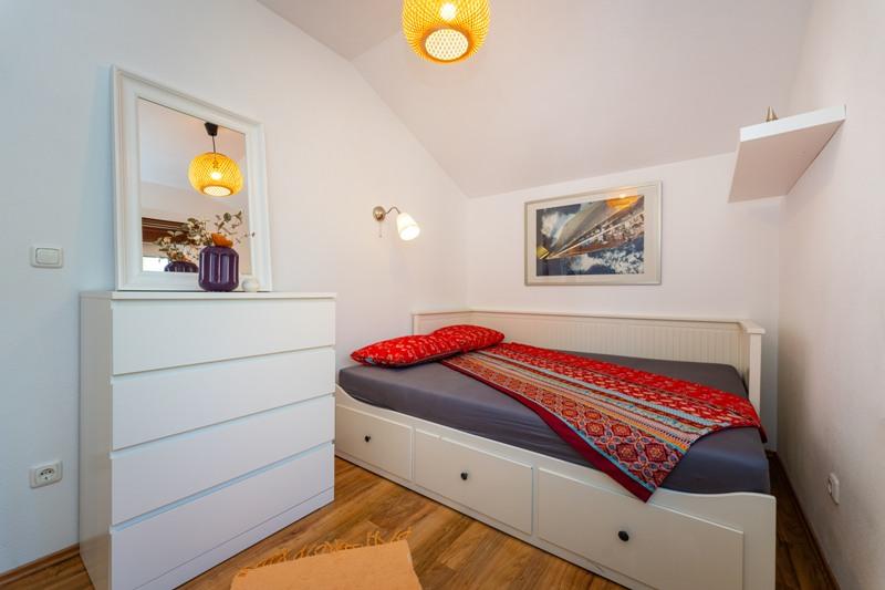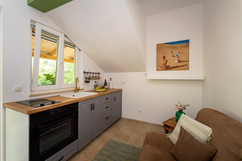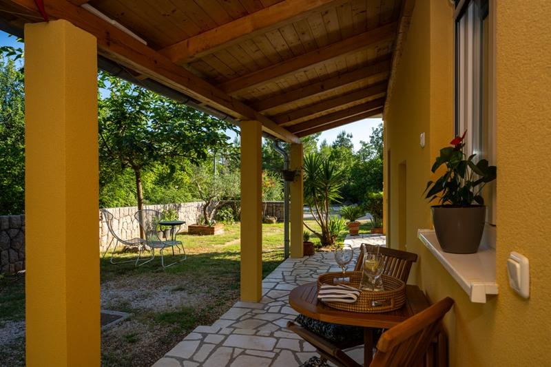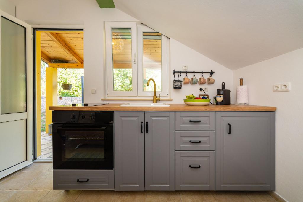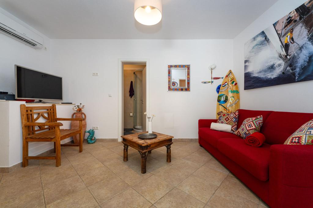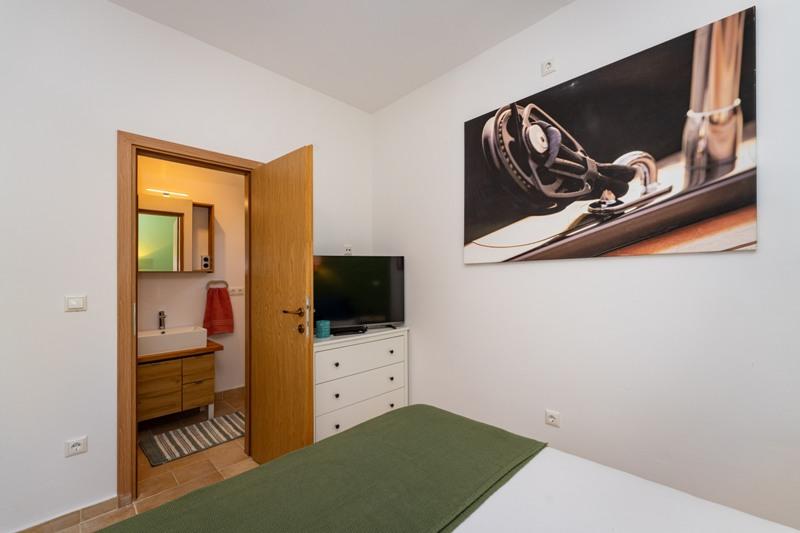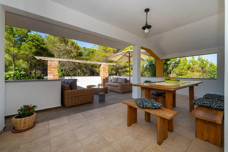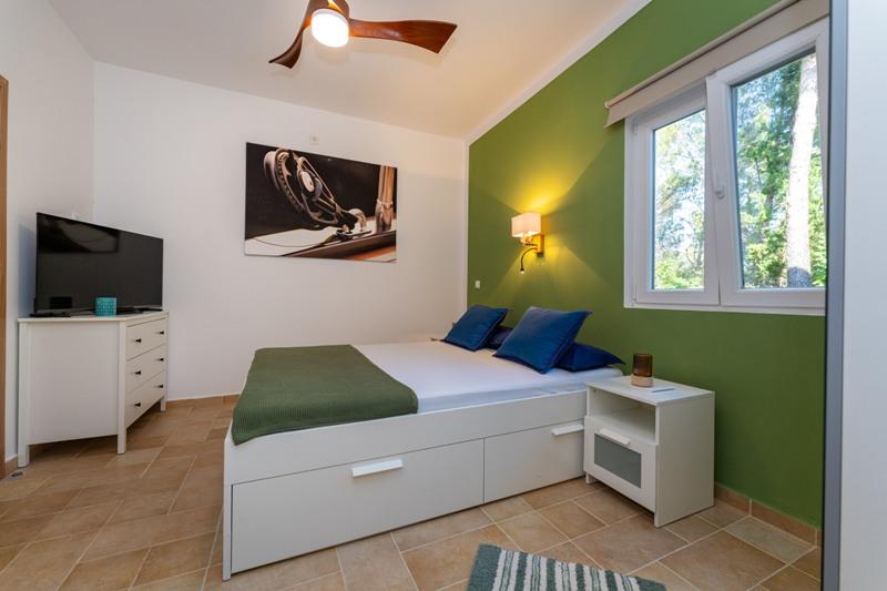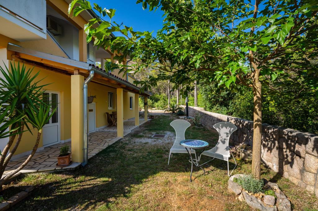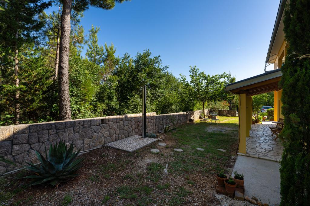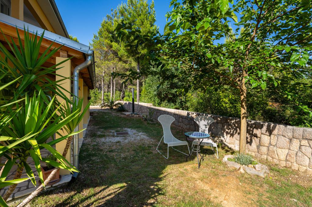 Objekt se nahaja na mirni lokaciji, ob borovem gozdu in nedaleč od centra Selina (250 m). Idealna izbira za miren družinski dopust ali dopust za pare stran od vsakodnevnega hrupa in gneče. Pred hišo je lepo urejen vrt, kjer lahko gostje pečejo na žaru ali se sprostijo na ležalnikih v senci borovcev. V objektu sta 2 apartmaja - 1 apartma za 4 osebe (2 spalnici) in 1 apartma za 2 osebi. Opremljeni so z vsem, kar je potrebno za prijeten in sproščen dopust. Vsak apartma ima SAT-TV, klimo in Wi-Fi. Na voljo je tudi vrtna prha.