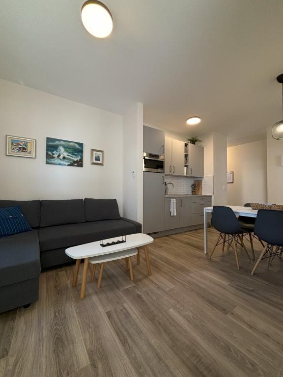 Lokacija je bila čudovita, pogled na morje naravnost z balkona in obala je res 2 metra stran. Stanovanje je bilo super čisto, imeli smo vse, kar smo želeli, vse lepo vzdrževano. Na voljo je bila tudi otroška posteljica s prikupno posteljnino in brisača s pravljičnimi liki za najino hčerko. Na voljo je bil tudi otroški sedež za stranišče. Kuhinja je v celoti opremljena, nič manjka. Gostitelji so bili fantastični, ustrežljivi in zelo prijazni. Priporočili so kraje za obisk, kraje za jesti in stvari za početi. Parkirno mesto takoj dobimo na vrtu. Vključen je tudi WLAN. Igrišče v bližini.