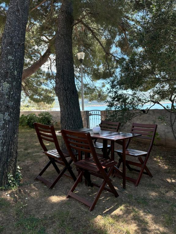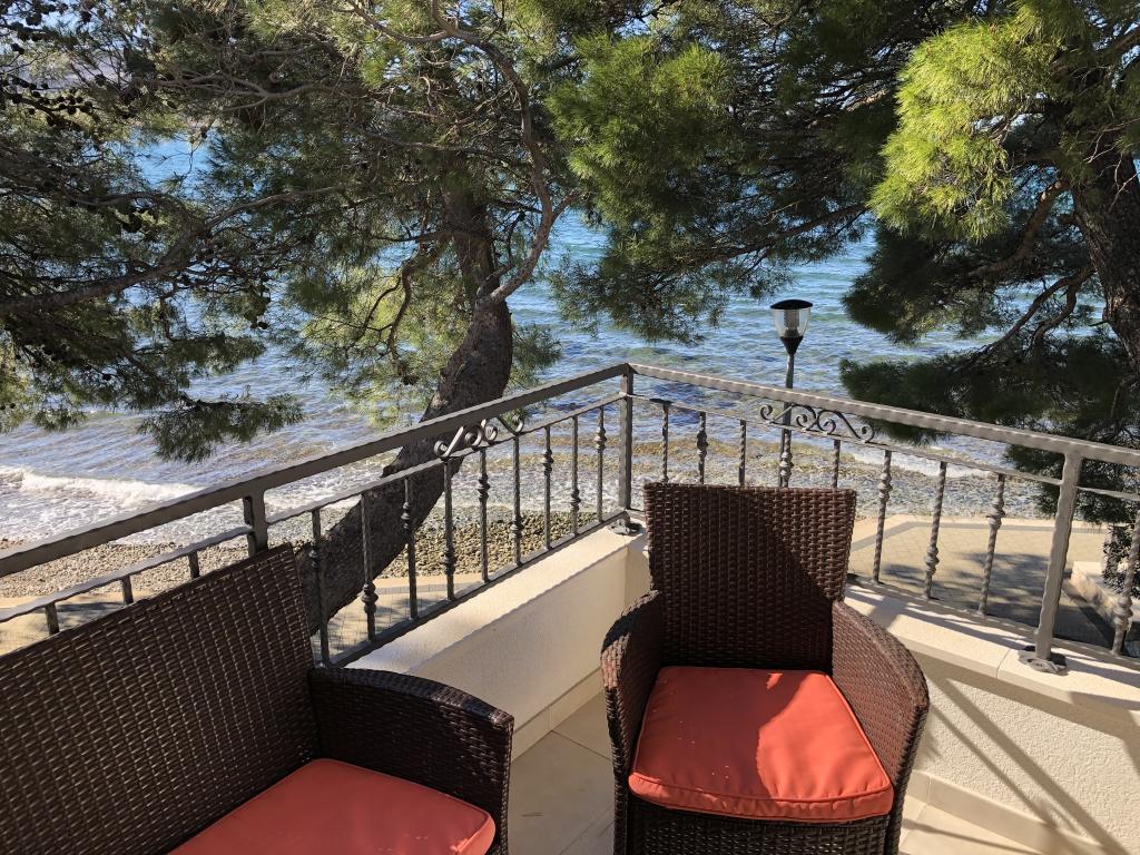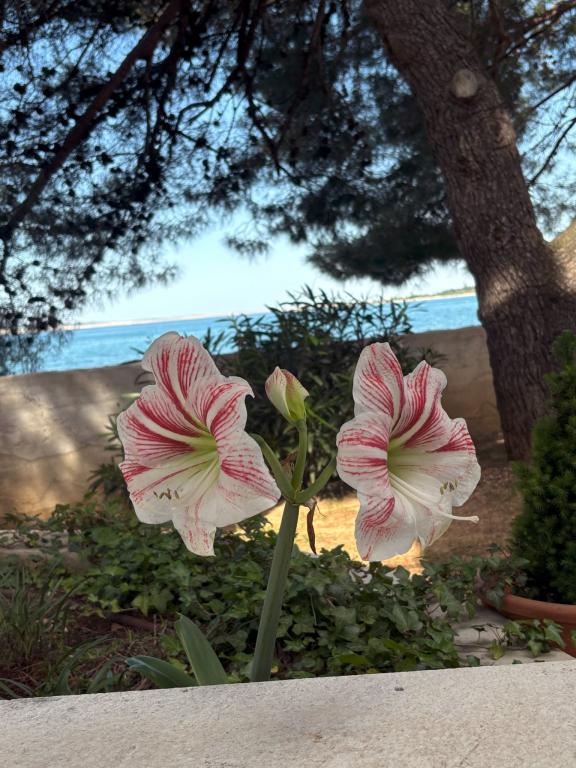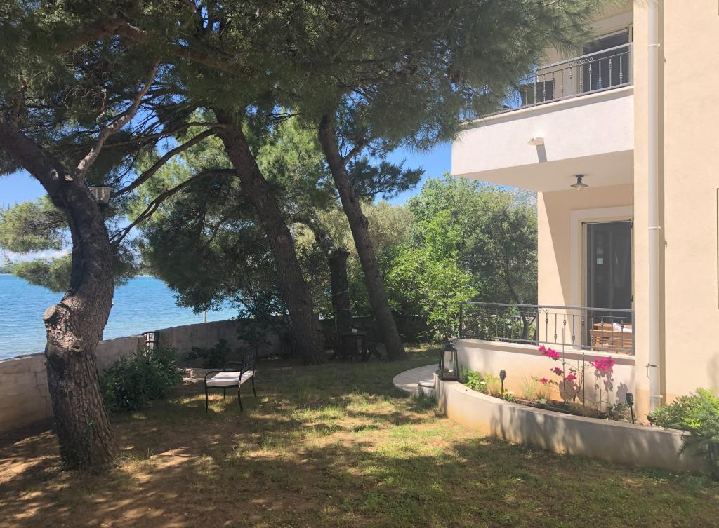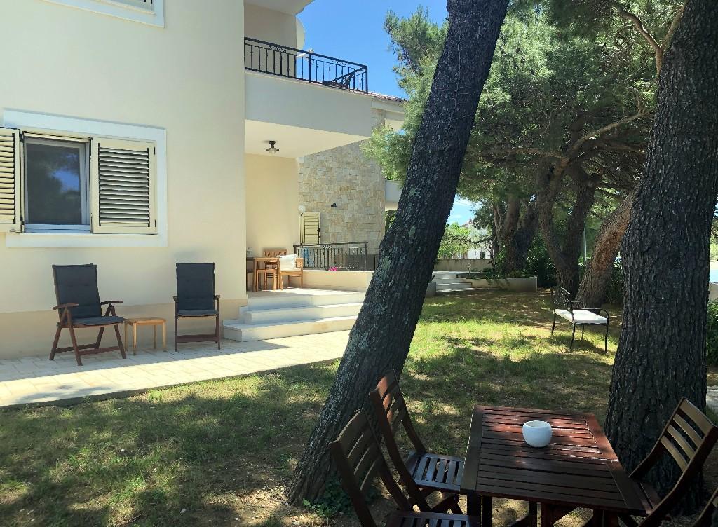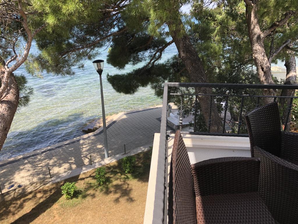 Čudovita nova vila z apartmaji neposredno ob morju - dostop do morja je dobesedno s terase apartmaja. Moderno opremljen apartma z vso potrebno opremo, brezplačnim ograjenim parkiriščem, zunanjim tušem, visečimi mrežami med mogočnimi borovci na posestvu, brezplačnim wifijem in še več. Izpostaviti velja predvsem prijazne lastnike vile, ki poskrbijo, da se počutite kot doma. Priporočamo tako posameznikom kot družinam z otroki!