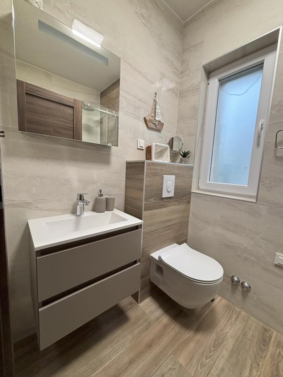 Čudovita nova vila ob morju in plaži, apartma vrhunsko opremljen z modernimi stvarmi in pohištvom, parkirišče na dvorišču, vse je v krogu 50 m, slaščičarna, restavracije, kavarne, promenada, mala marina, trgovine, tržnica.... Terasa apartmaja je najboljši del, božanski trenutki ob morju, jutranje kavice v miru in tišini, vonj po borovcih in morju, popolni sončni zahodi.....pridite in doživite, tega se z besedami ne da opisati. In vse to vzdušje ne bi bilo brez lastnikov vile, Slavena in Mile, čudovitega zakonskega para, popolnih gostiteljev. Predvsem gostoljubni, vedno pripravljeni pomagati, priskočiti na pomoč, gostom, ki jih izjemno cenijo, so na voljo in že ob prihodu čutiš, da si dobrodošel. Mila, Slaven, hvala za vse, bile so sanjske počitnice, se vidimo naslednje leto!