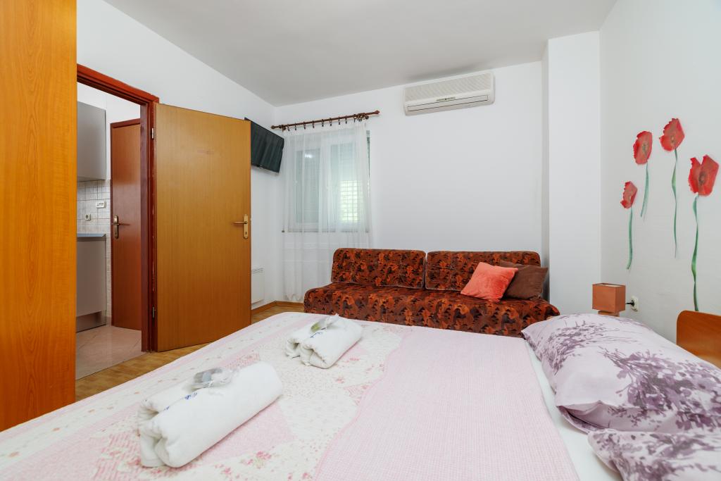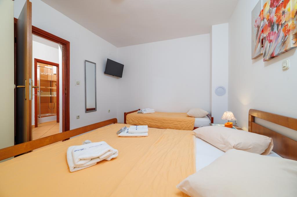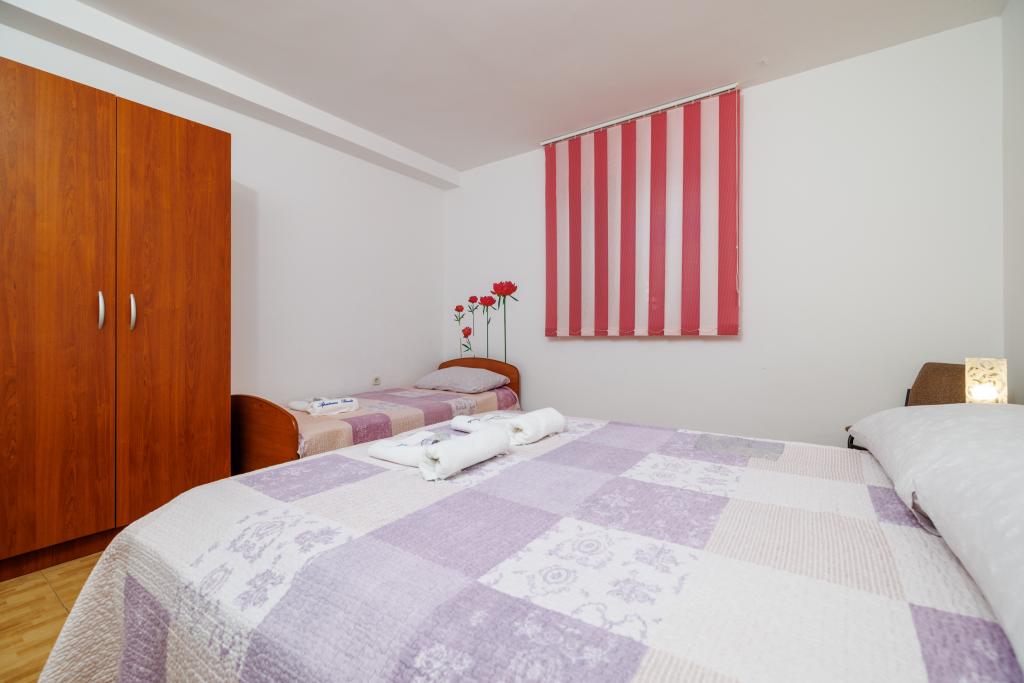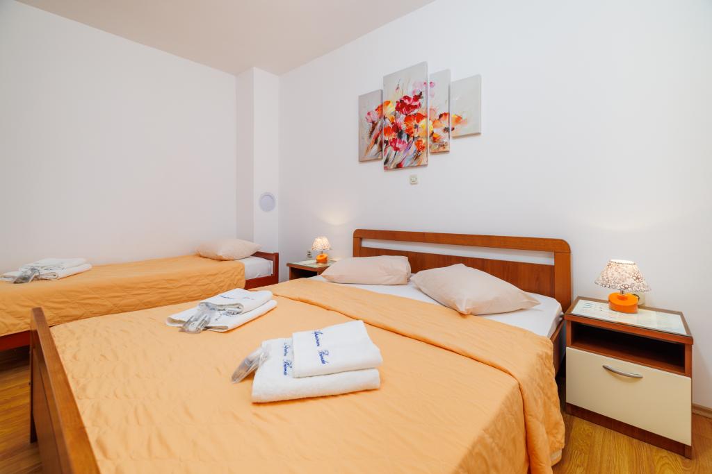 Udobne sobe, del sobe je kopalnica, balkon, hladilnik. Nahaja se v zelo mirnem delu mesta, le 5 minut od plaže. To je klimatiziran in parkirišče za vozila. Vrt ima žar in miza s stoli, tako da je mogoče in kosilo. Mario in njegova družina so zelo storitev in so vedno tam odgovorili na vaša vprašanja. Hvala za vašo kratko, a lepi sobi. Tina in Tom