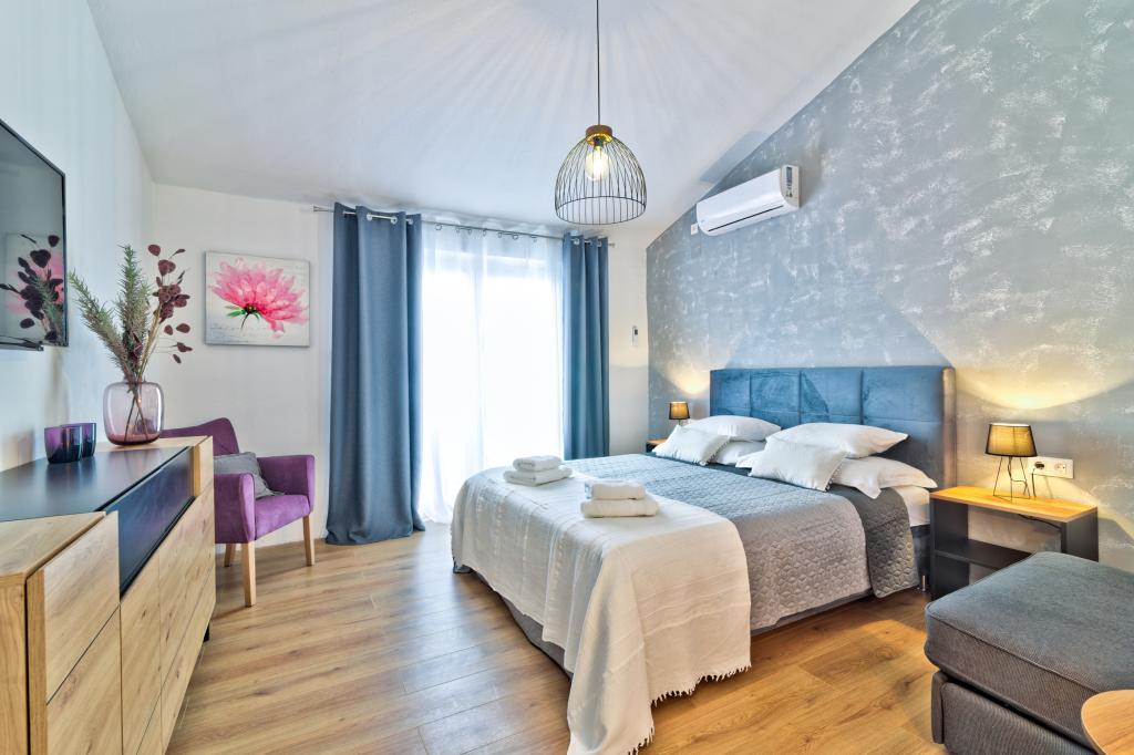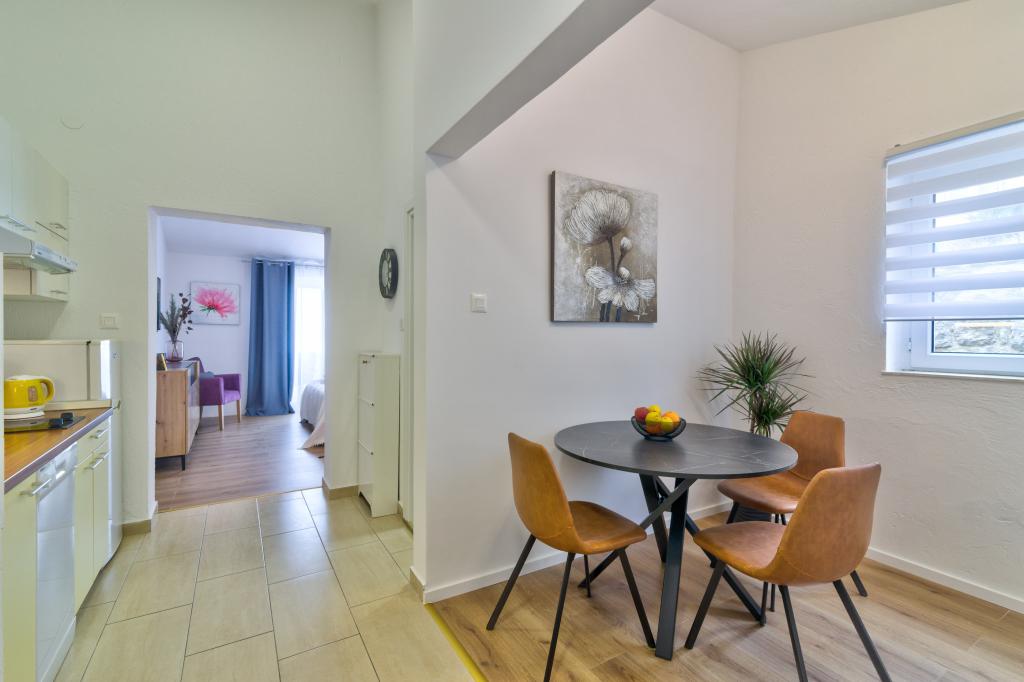 Veseli smo, da vam predstavim "Bobinac" apartmajev in udobnih klimatiziranih apartmajev, ki se nahajajo v drugem nadstropju in pritličju stanovanjske hiše, zgrajene dobesedno 50 metrov od morja in 300 metrov od centra mesta. Bobinac Apartmaji so v mirnem mestu, ne da bi veliko prometa in vrveža in vendar le nekaj korakov od zahtevane za prijeten in sproščujoč dopust. Apartmaji Bobinac so mešanica verodostojna sprostite, stran od hrupa, industrijskega onesnaževanja in norost vsakdanjih Grozničav življenje, brez da bi vse prednosti današnje moderne tehnologije. Naš objekt ima skupaj 4 apartmaji. Vse kuhinje so opremljene z umivalnikom, hladilnikom, štedilnikom in vsemi potrebnimi pripomočki, in bo priložnost za pripravo hrane doma. Poleg tega je odvisno od tega, katero stanovanje ste jo izbrali, ali ki je brezplačno, z brisačami za prhanje, toaletni papir, šampon, pralni stroj, kabinet in kopalnica, v kopalnici vsi so tudi tuši. Klimatizirani apartmaji vam in satelitske TV sprejemniki, in preskrbo z wireles interneta čaka. Na drugem nadstropju so tri apartmajev, dva apartmaja fit štiri osebe (2 +2), in tistega, šest (2 +4). V pritličju se nahaja stanovanje s kapaciteto za 8 oseb (4 +4). Vsak apartma ima balkon s čudovitim pogledom na morje. Seved