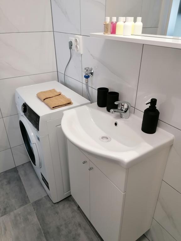 Darilo dobrodošlice za naše goste: Sok, Nesscafee, čaj, palčke, banana, gel za tuširanje 50ml, šampon za lase 50ml, balzam za lase 50ml. Apartma ima čisto posteljnino, brisače in sušilnik za lase.