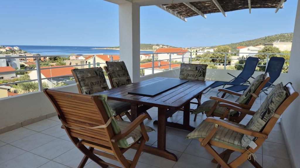Velika terasa s čudovitim pogledom na morje vas pusti brez besed. Namestitev je urejena, čista, udobna in moderna. Gostitelji so čudoviti in ustrežljivi ter vas vedno sprejmejo. Morje je zelo blizu nastanitve, kraj pa je majhen in miren. Ena lepših nastanitev, kjer smo bili. Vsako priporočilo.