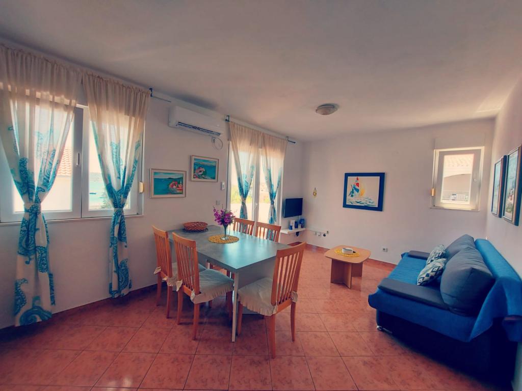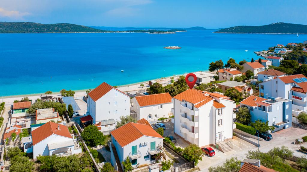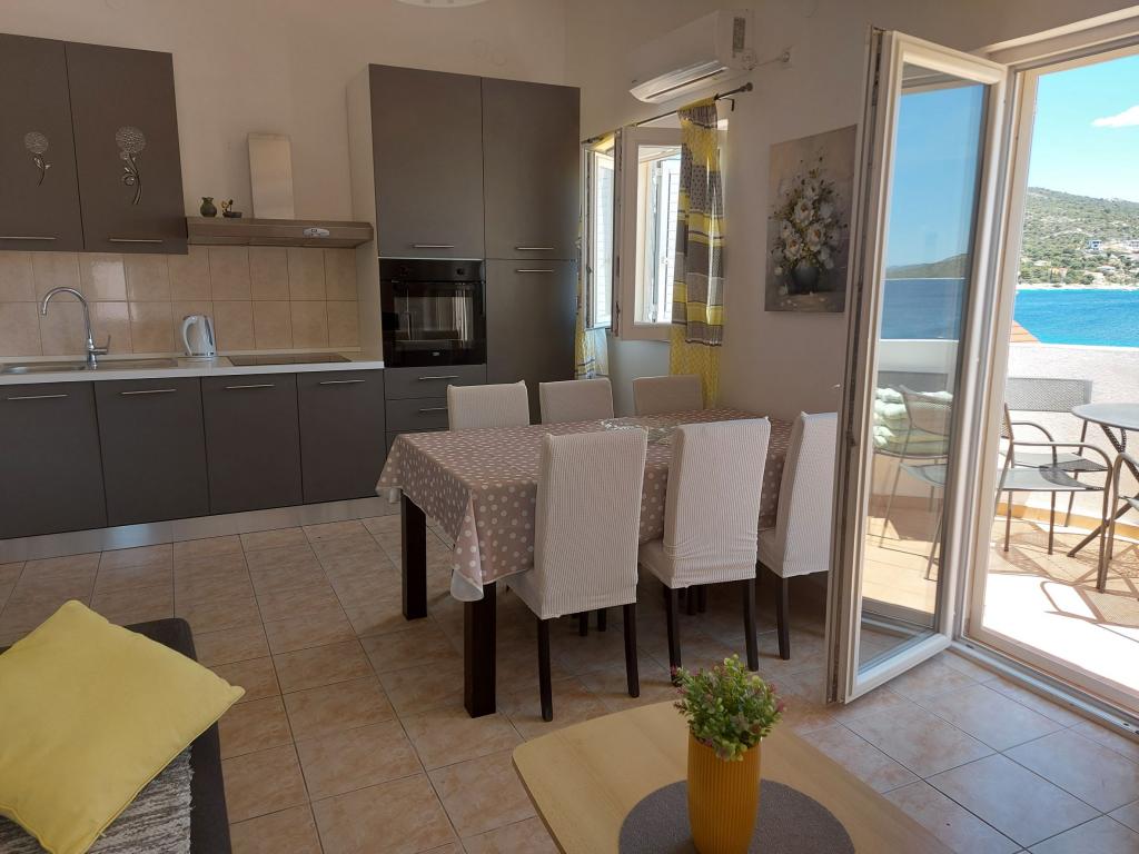 Udobni in popolnoma opremljeni apartmaji s pogledom na morje. Objekt se nahaja v mirnem okolju, 50m od morja in trgovin.