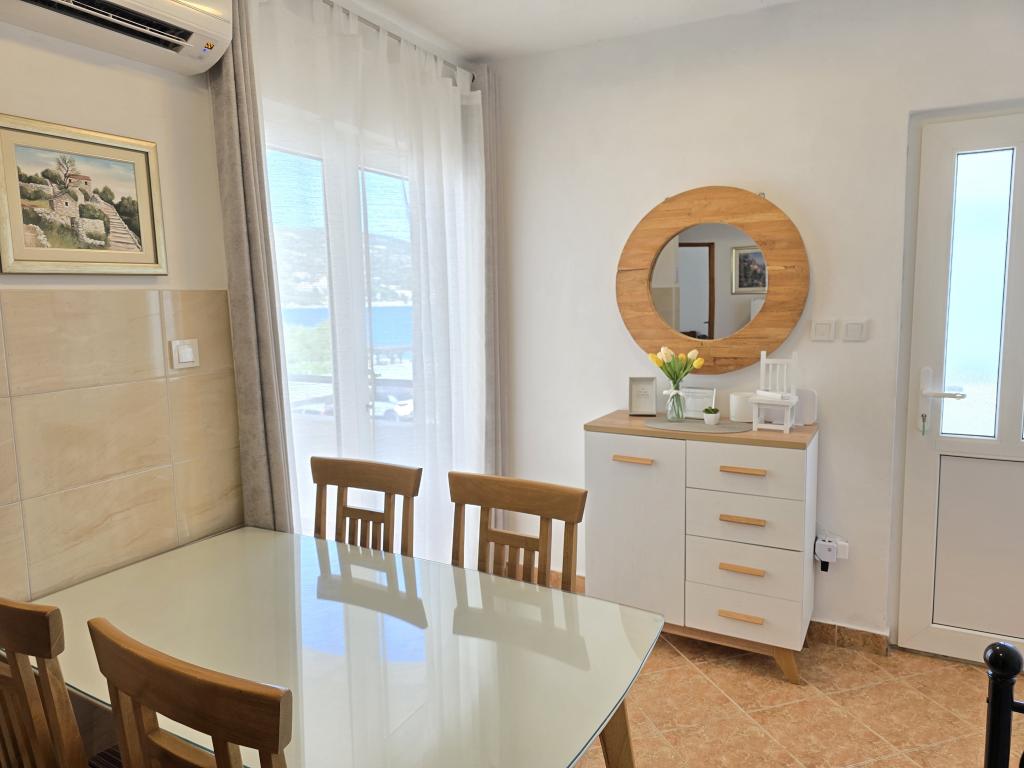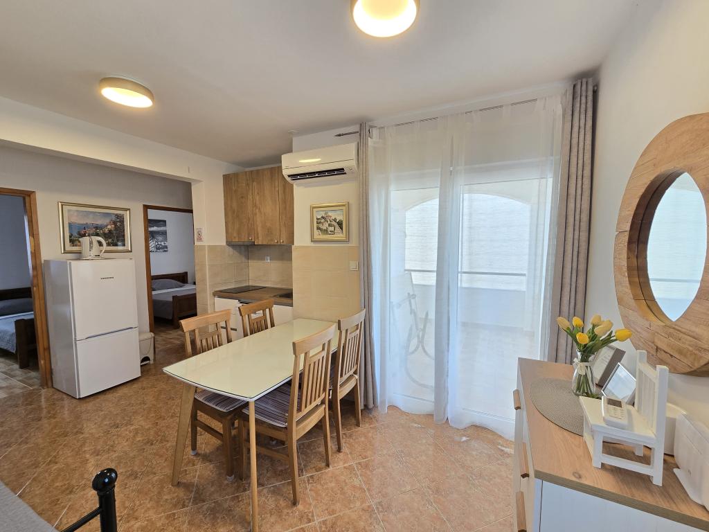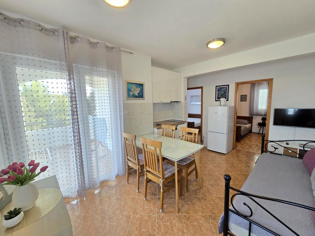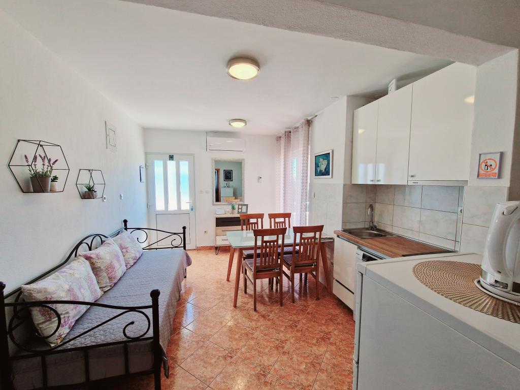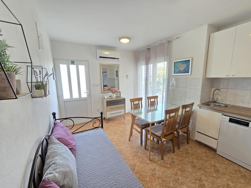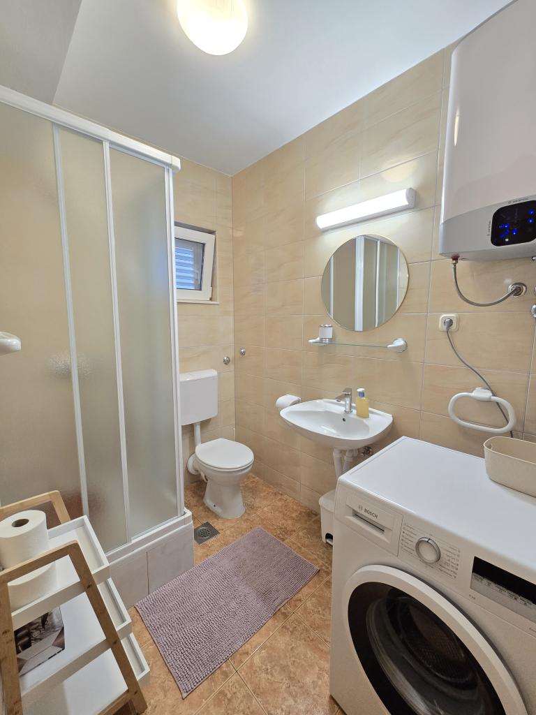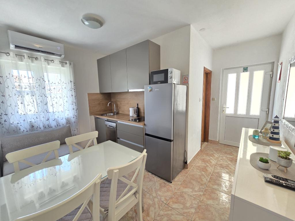 Apartma je tik ob morju. Čistoča je 10+. V tako čistem še nismo bili. Lastnica zelo prijazna. V apartmaju je bilo vse za bivanje od krp do tablet za pomivalni stroj ter toaletnega papirja. Pričakala nas je tudi pijača dobrodošlice. Na razpolago imate balinišče, igrišče za odbojko, ping pong in namizni nogomet. Zunanji žar ter prostor za druženje