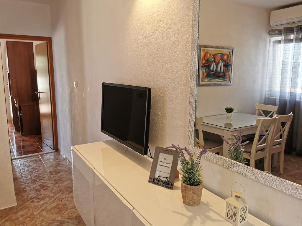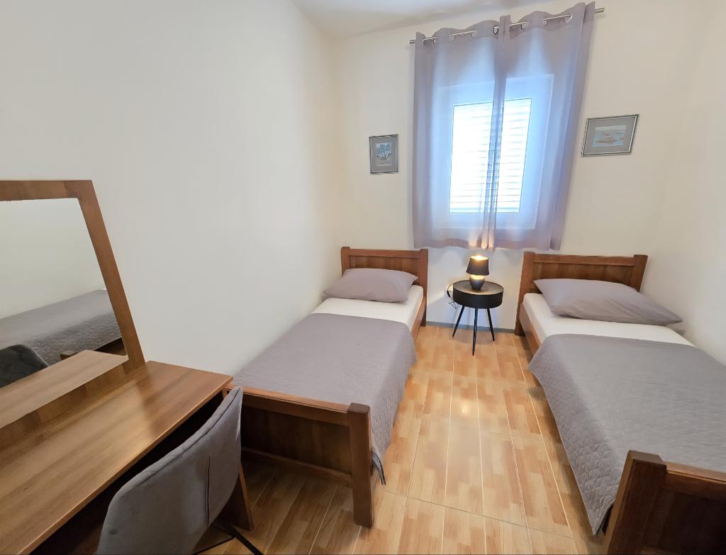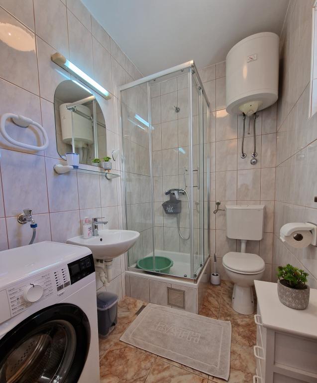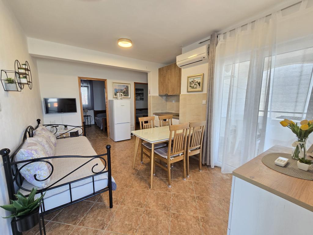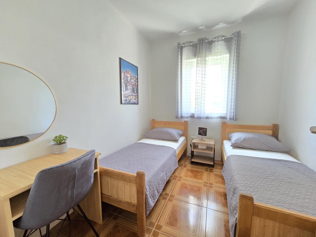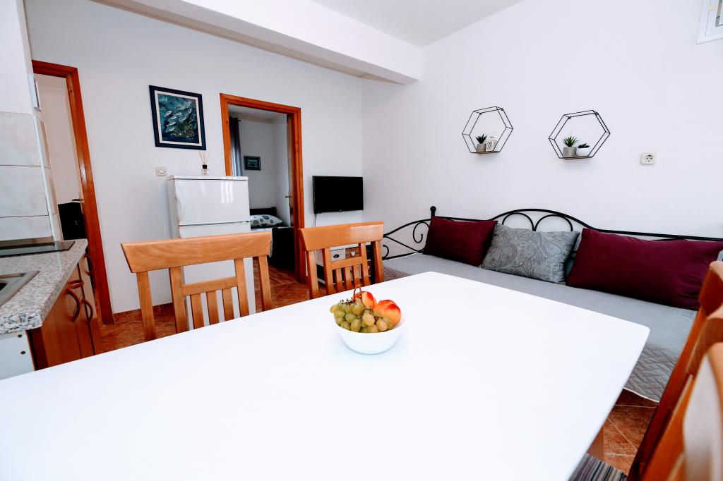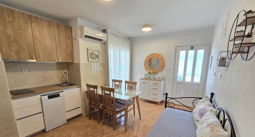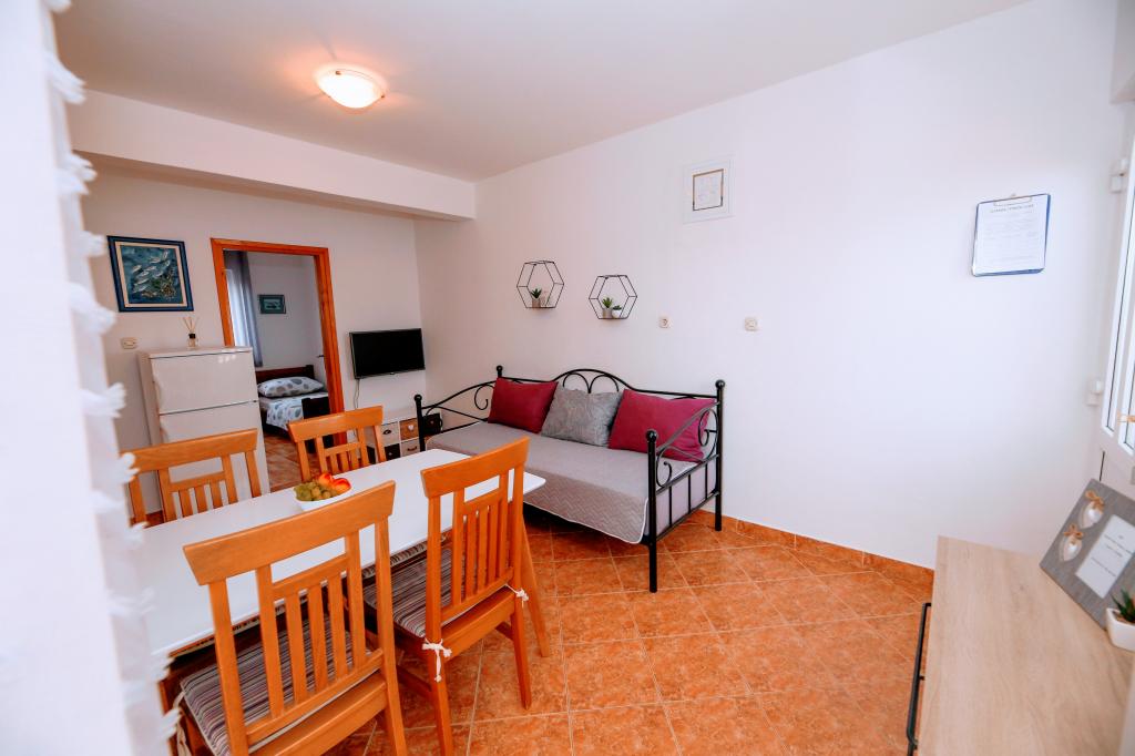 Apartma je tik ob morju. Čistoča je 10+. V tako čistem še nismo bili. Lastnica zelo prijazna. V apartmaju je bilo vse za bivanje od krp do tablet za pomivalni stroj ter toaletnega papirja. Pričakala nas je tudi pijača dobrodošlice. Na razpolago imate balinišče, igrišče za odbojko, ping pong in namizni nogomet. Zunanji žar ter prostor za druženje