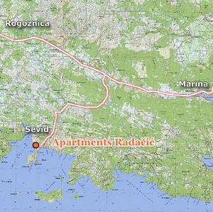 Radačić Apartmaji se nahajajo v majhni vasici Sevid. Daleč od hrupa vsakdanjih mestnih območjih je to majhno mesto vam ponuja neokrnjeno naravo, kristalno čista voda in mirni soseski. V bližnjem zaščito UNESCA mesto z bogato zgodovino in zanimivosti, Split, Trogir, Šibenik in nacionalnih parkov Krka in Kornati. Nudimo namestitev v dveh apartmajih. Apartma A4 je opremljena z dvema dvoposteljne sobe, kopalnica (tuš / WC) in kuhinja / dnevna soba s kavčem za eno osebo. Apartma A4 +2 obsega dve dvoposteljni sobi, kuhinjo / dnevno sobo s kavčem za dve osebi in dve kopalnici (tuš / WC). Vsi apartmaji imajo SAT / TV, ločena terasa, dostop do vrta z žarom in brezplačen parkirni prostor. Plaža je manj kot 20 metrov od hiše in hiša sama je v prvi vrsti do morja. V neposredni bližini restavracij, barov in trgovin. Gostje lahko uporabljate čoln, v dogovoru z lastnikom (doplačilo).