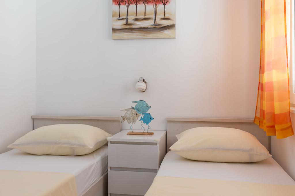 Nastanitev odlično, zelo čisti apartmaji, doma OK, plaža in morje brez napak. Sama mir, ni turistov, samo ljudje, ki bivajo v apartmajih. Mirno ponoči. Lepa okolica. Trgovine manjkajoče, ki želi kupiti, lahko greš v mesto. Ta kraj sem zelo priporočam stanovanje. Naša družina je bila zelo vesela za to hvala. :-):-):-)