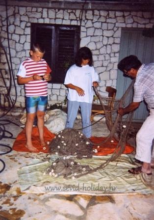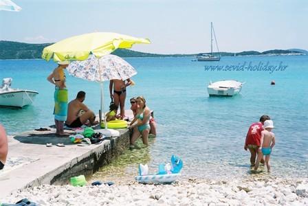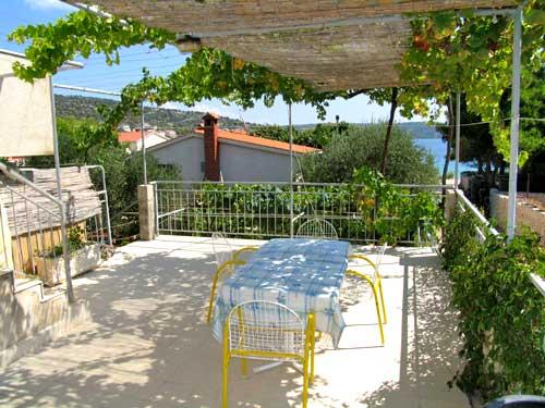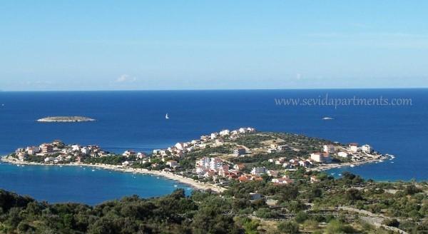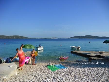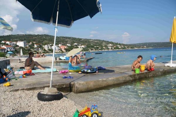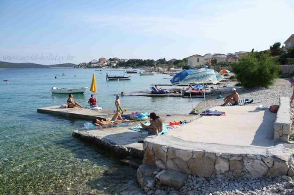 Apartmaji VUKUŠIĆ, 40 m od morja v Sevid, med Trogirja in Primoštena. Nudimo nastanitev v treh udobnih apartmajih blizu prodniki plaže s plitvo vhodom v vodo.