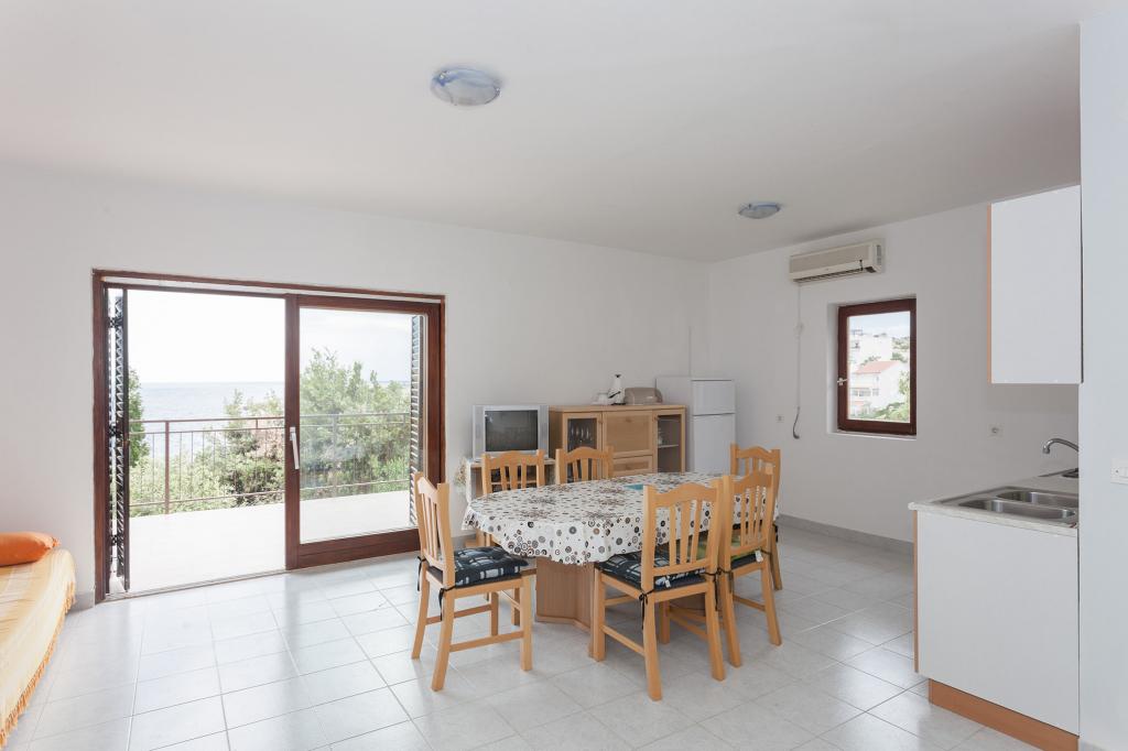 Velika nastanitev. Velika dnevna soba in velika terasa. Lep pogled na morje. Odlično za družine, kamnite in betonske plaže pod hišo. Tiho, sprostitev. Izolirano polotok, ni prometa.