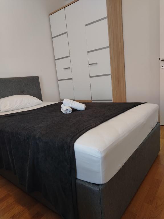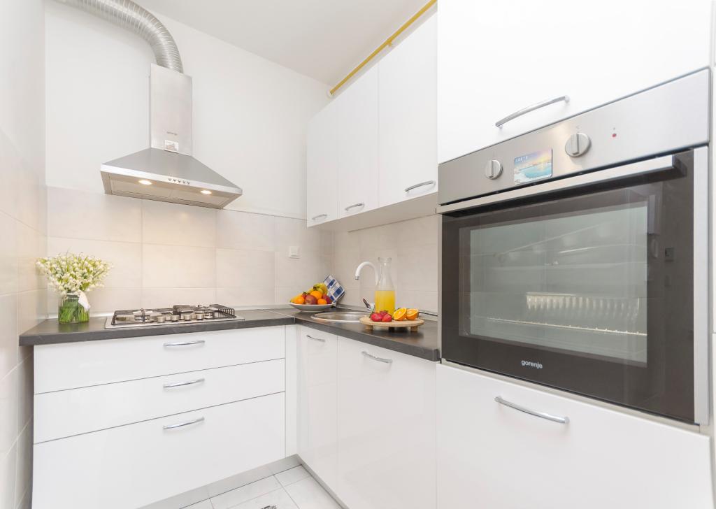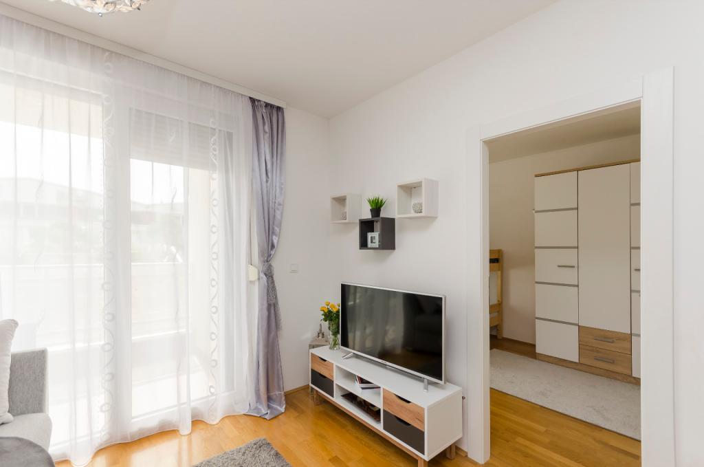 Popolnoma in moderno opremljeno stanovanje v mirnem delu mesta, sestavljeno iz dveh spalnic, kuhinje z jedilnico, dnevne sobe, kopalnice in terase ter garaže za avto. Nahaja se 15 minut hoje od starega mestnega jedra. Le 1 km od trdnjave Barone, 1,1 km od katedrale sv. Ivana in 900 metrov od trdnjave sv. Michael. Apartma je od mestne plaže Banj oddaljen 1 km. Najbližja restavracija je oddaljena 500 m, najbližja trgovina pa le 100 m. Narodni park Krka je oddaljen 8 km, Narodni park Kornati pa 40 km.
