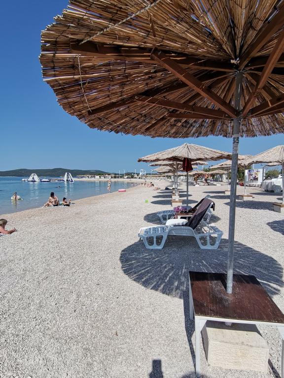 Počitnice z družino in prijatelji brez stresa in hrupa v mirnem okolju. Oddaljenost 1,8 km od čudovite plaže "Rezalište" z brezplačnim parkiriščem in bogato vsebino, 4 km od centra mesta, 10 km od NP Krka, in vse kar potrebujete, trgovine, restavracije, hitra prehrana, lekarna, nogometno in košarkarsko igrišče z vadbo oprema, vse v krogu 0,4 km Cena vključuje parkiranje do 3 vozil na dvorišču, ter turistično takso.
