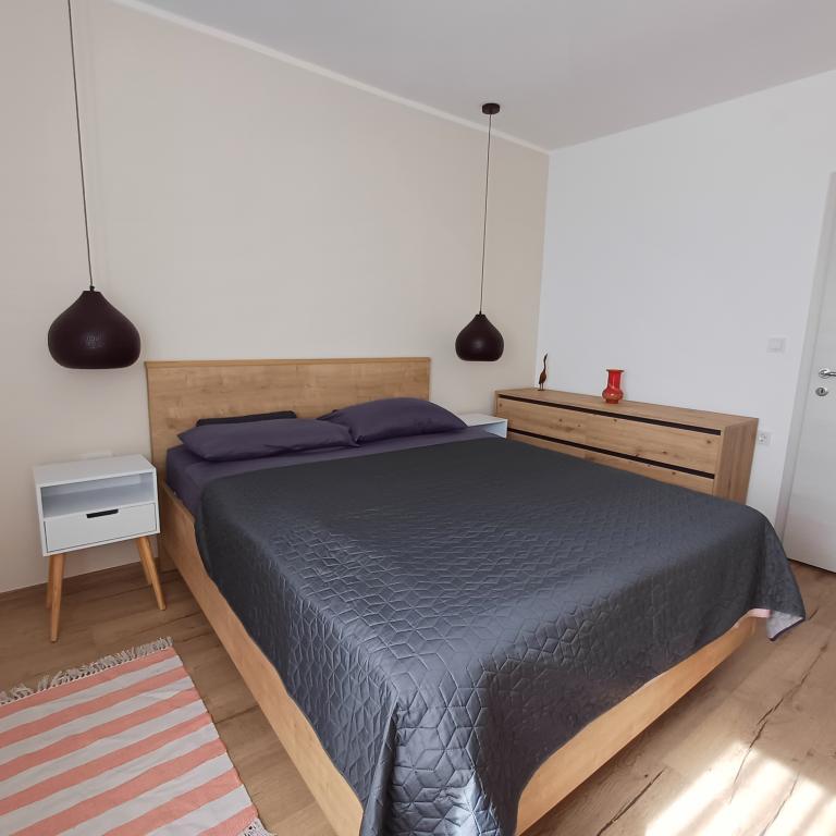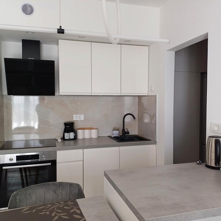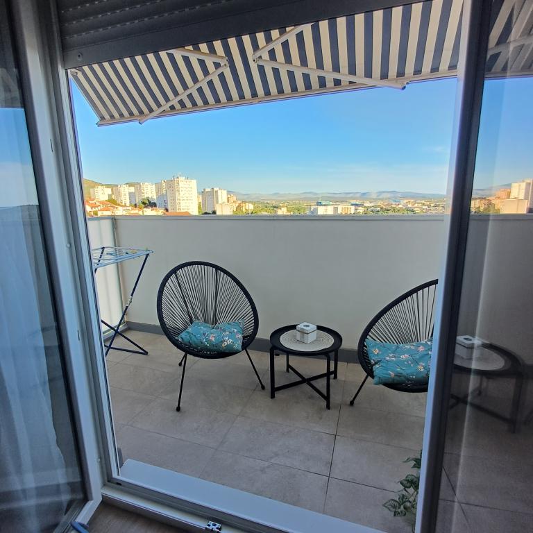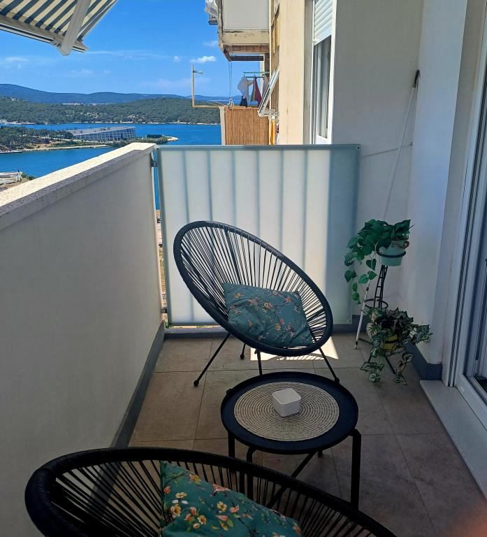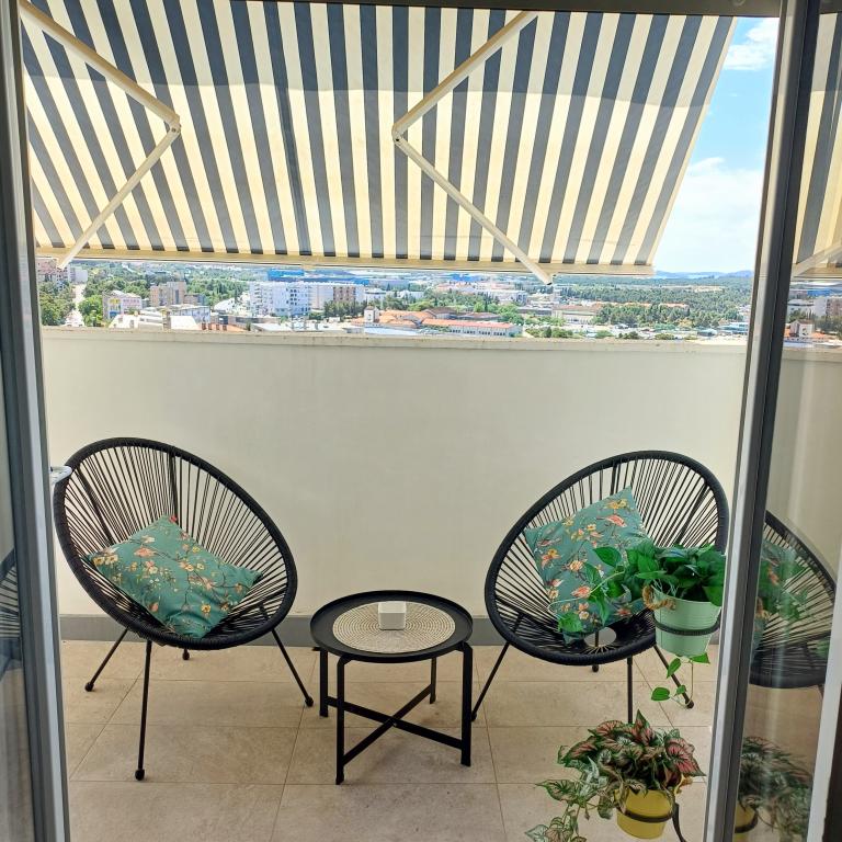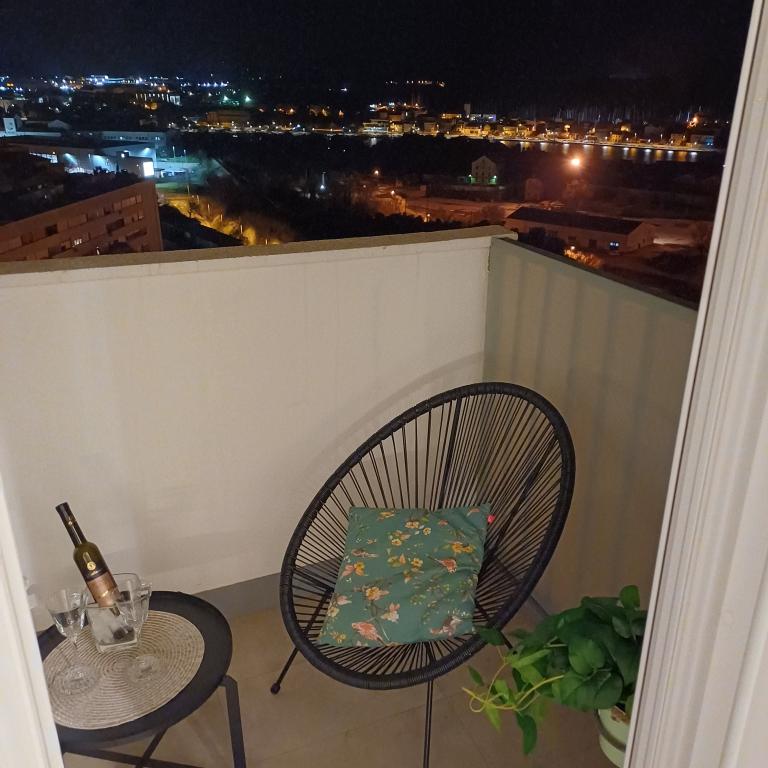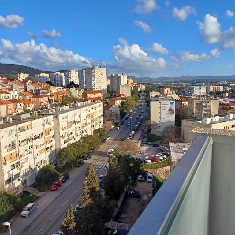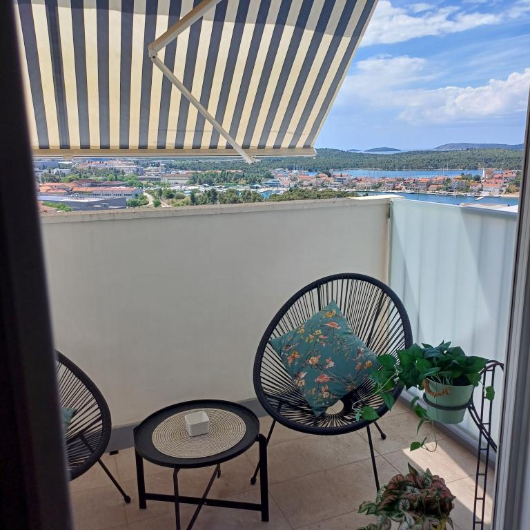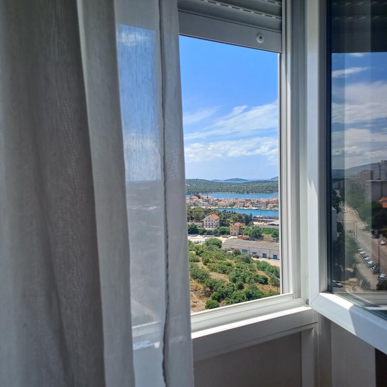 Luksuzno stanovanje se nahaja v 10. nadstropju stanovanjske stavbe v Šibeniku, na odlični lokaciji, 20 minut hoje od starega mestnega jedra in mestne plaže Banj. Luksuzna nastanitev z balkonom s čudovitim pogledom na morje in mesto nudi gostom prijetno in sproščujoče bivanje. Apartma je sestavljen iz prostorne spalnice, hodnika, kopalnice s kabino za prhanje, sušilcem za lase in pralnim strojem. Dnevna soba in jedilnica sta v prostoru s sodobno opremljeno kuhinjo za krajše ali daljše bivanje, ki vsebuje posodo, kuhinjske pripomočke, štedilnik, pečico, pomivalni stroj, hladilnik, kuhalnik vode in aparat za kavo. Apartma je klimatiziran, gostom pa je na voljo TV in brezplačen brezžični internet. Javno parkirišče se nahaja pred samo stavbo. Takoj ko zapustite stavbo in prečkate ulico, se na razdalji 30 m nahajajo trgovina z živili, lekarna in kavarna ter banka, pošta, picerija, telovadnica, frizerski salon, trgovski center, avtobusna postaja. , pristanišče za čolne je oddaljeno 700 m.