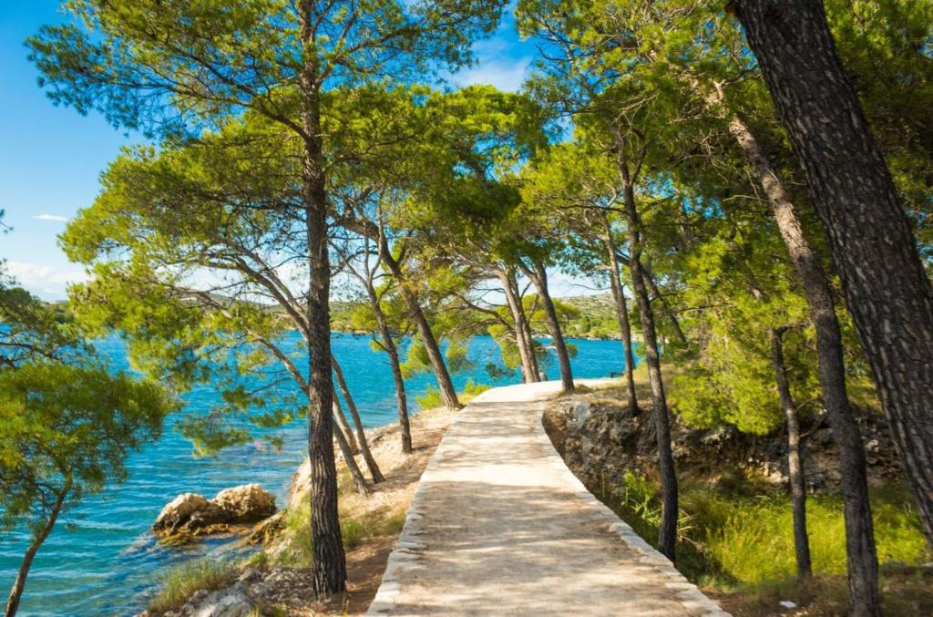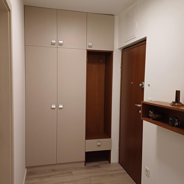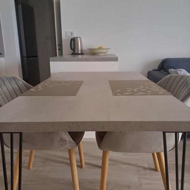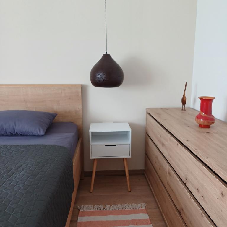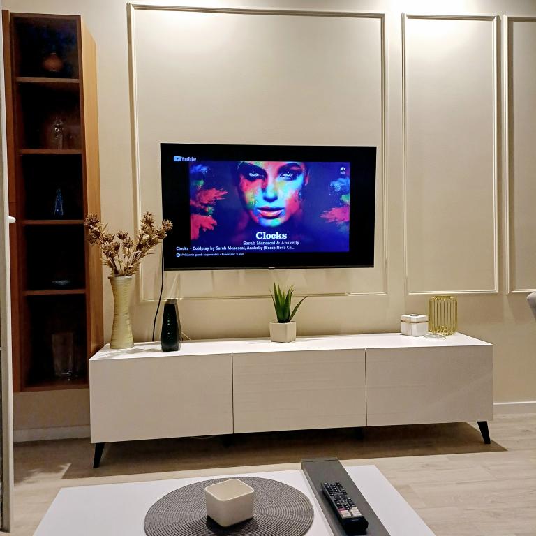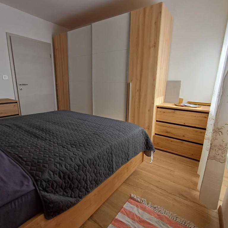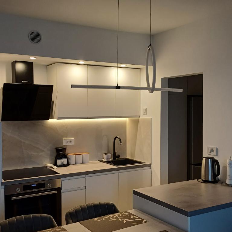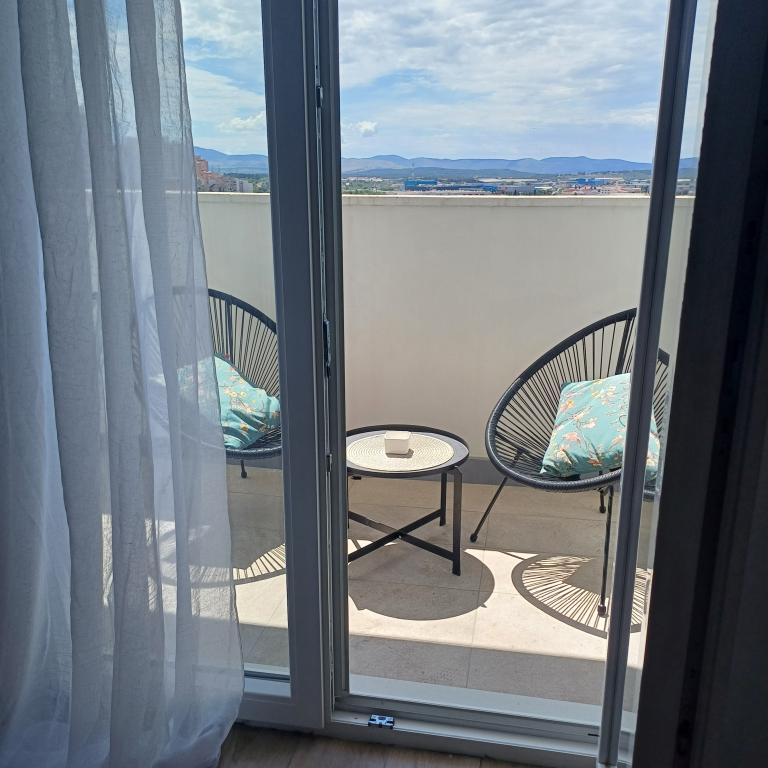 Luksuzno stanovanje se nahaja v 10. nadstropju stanovanjske stavbe v Šibeniku, na odlični lokaciji, 20 minut hoje od starega mestnega jedra in mestne plaže Banj. Luksuzna nastanitev z balkonom s čudovitim pogledom na morje in mesto nudi gostom prijetno in sproščujoče bivanje. Apartma je sestavljen iz prostorne spalnice, hodnika, kopalnice s kabino za prhanje, sušilcem za lase in pralnim strojem. Dnevna soba in jedilnica sta v prostoru s sodobno opremljeno kuhinjo za krajše ali daljše bivanje, ki vsebuje posodo, kuhinjske pripomočke, štedilnik, pečico, pomivalni stroj, hladilnik, kuhalnik vode in aparat za kavo. Apartma je klimatiziran, gostom pa je na voljo TV in brezplačen brezžični internet. Javno parkirišče se nahaja pred samo stavbo. Takoj ko zapustite stavbo in prečkate ulico, se na razdalji 30 m nahajajo trgovina z živili, lekarna in kavarna ter banka, pošta, picerija, telovadnica, frizerski salon, trgovski center, avtobusna postaja. , pristanišče za čolne je oddaljeno 700 m.