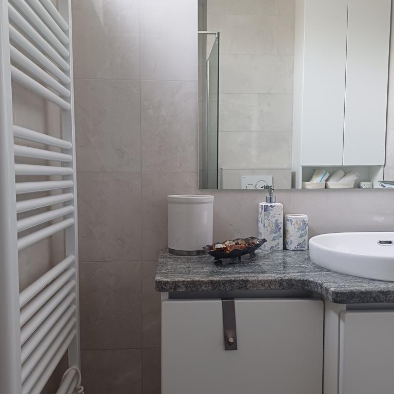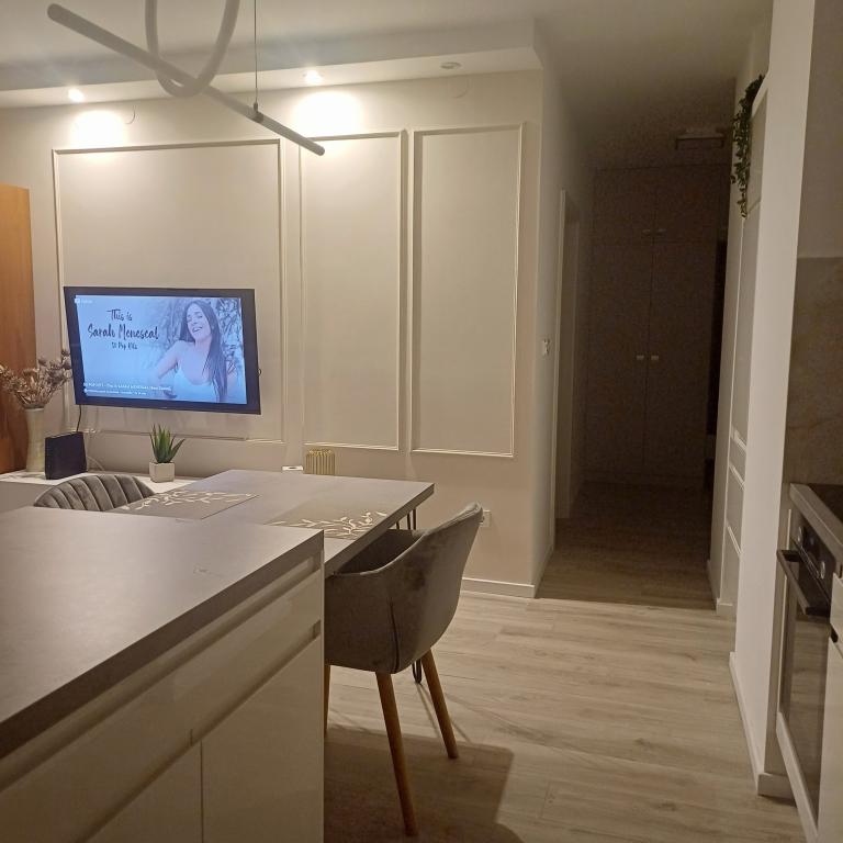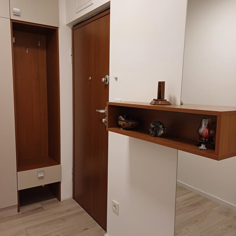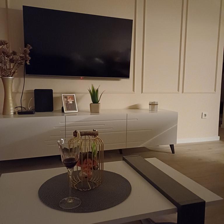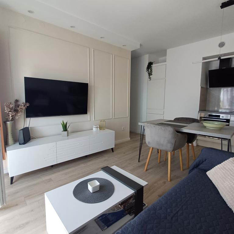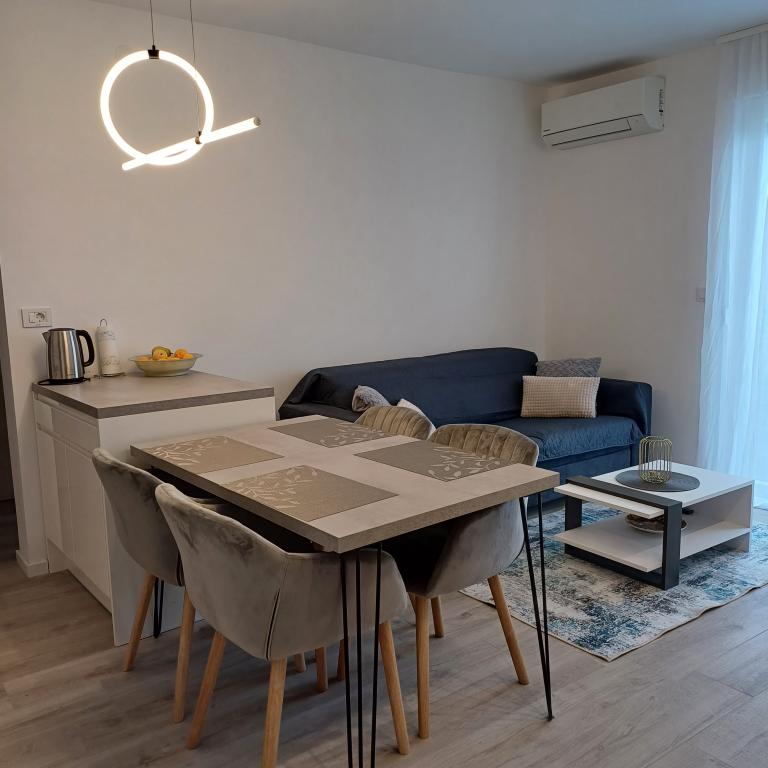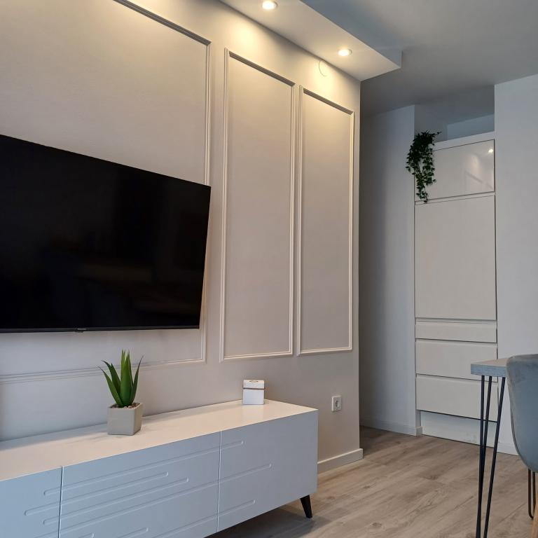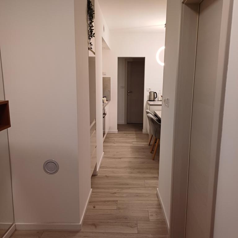 Luksuzno stanovanje se nahaja v 10. nadstropju stanovanjske stavbe v Šibeniku, na odlični lokaciji, 20 minut hoje od starega mestnega jedra in mestne plaže Banj. Luksuzna nastanitev z balkonom s čudovitim pogledom na morje in mesto nudi gostom prijetno in sproščujoče bivanje. Apartma je sestavljen iz prostorne spalnice, hodnika, kopalnice s kabino za prhanje, sušilcem za lase in pralnim strojem. Dnevna soba in jedilnica sta v prostoru s sodobno opremljeno kuhinjo za krajše ali daljše bivanje, ki vsebuje posodo, kuhinjske pripomočke, štedilnik, pečico, pomivalni stroj, hladilnik, kuhalnik vode in aparat za kavo. Apartma je klimatiziran, gostom pa je na voljo TV in brezplačen brezžični internet. Javno parkirišče se nahaja pred samo stavbo. Takoj ko zapustite stavbo in prečkate ulico, se na razdalji 30 m nahajajo trgovina z živili, lekarna in kavarna ter banka, pošta, picerija, telovadnica, frizerski salon, trgovski center, avtobusna postaja. , pristanišče za čolne je oddaljeno 700 m.